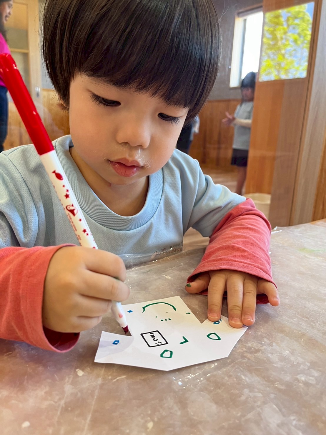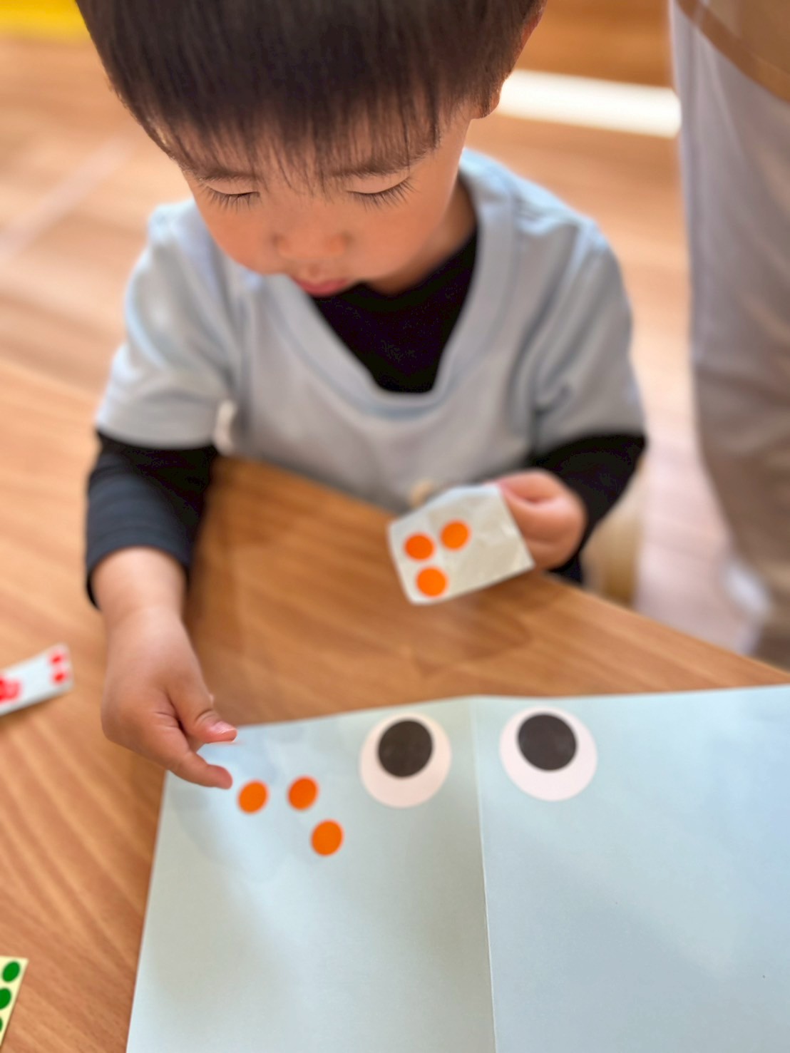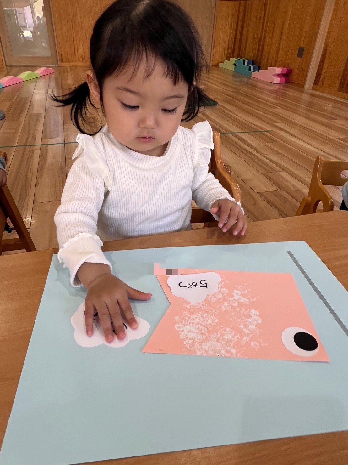 英語教室の後は鯉のぼりにシールを貼ってかわいい鱗を作りました。シール張りが大好きなぱんださん、集中して貼りかわいい鯉のぼりが出来ました🎏