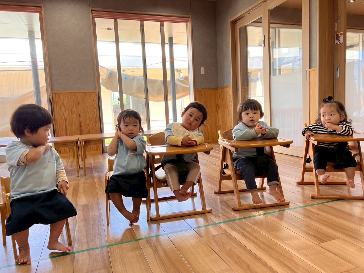 その後はお部屋の中で運動遊びをし滑り台や平均台、階段などを使って好きな場所で楽しみました🙌先生がバスに乗って揺られてる🎶と歌うと体を揺らしながら楽しむ姿が見られましたよ🥰ぱんだ🐼ぐみ
