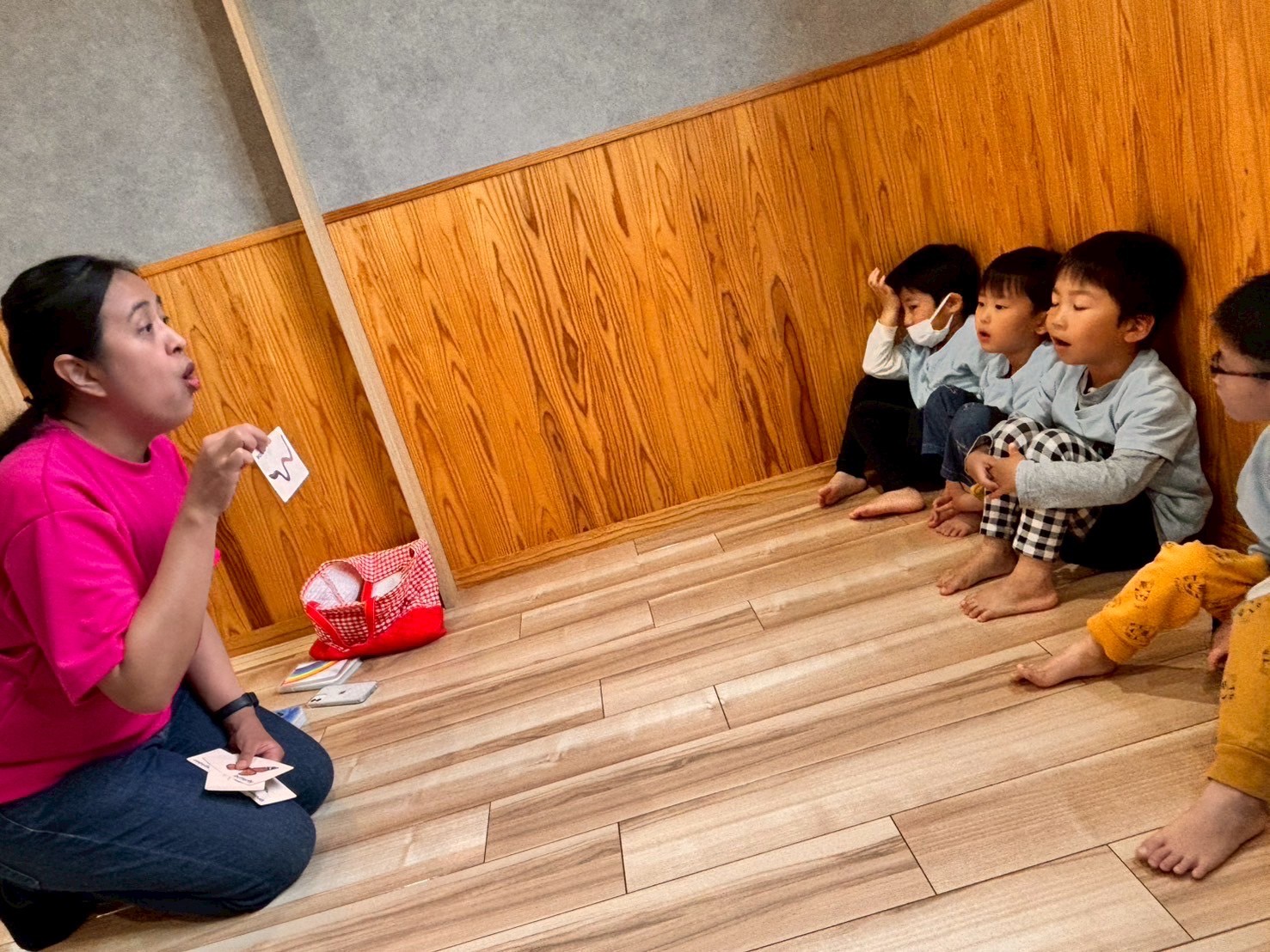 生き物の色や名前をクイズ形式で答えていきましたよ😊みんな積極的に「わかるー♡」と楽しそうに答えていました☘️