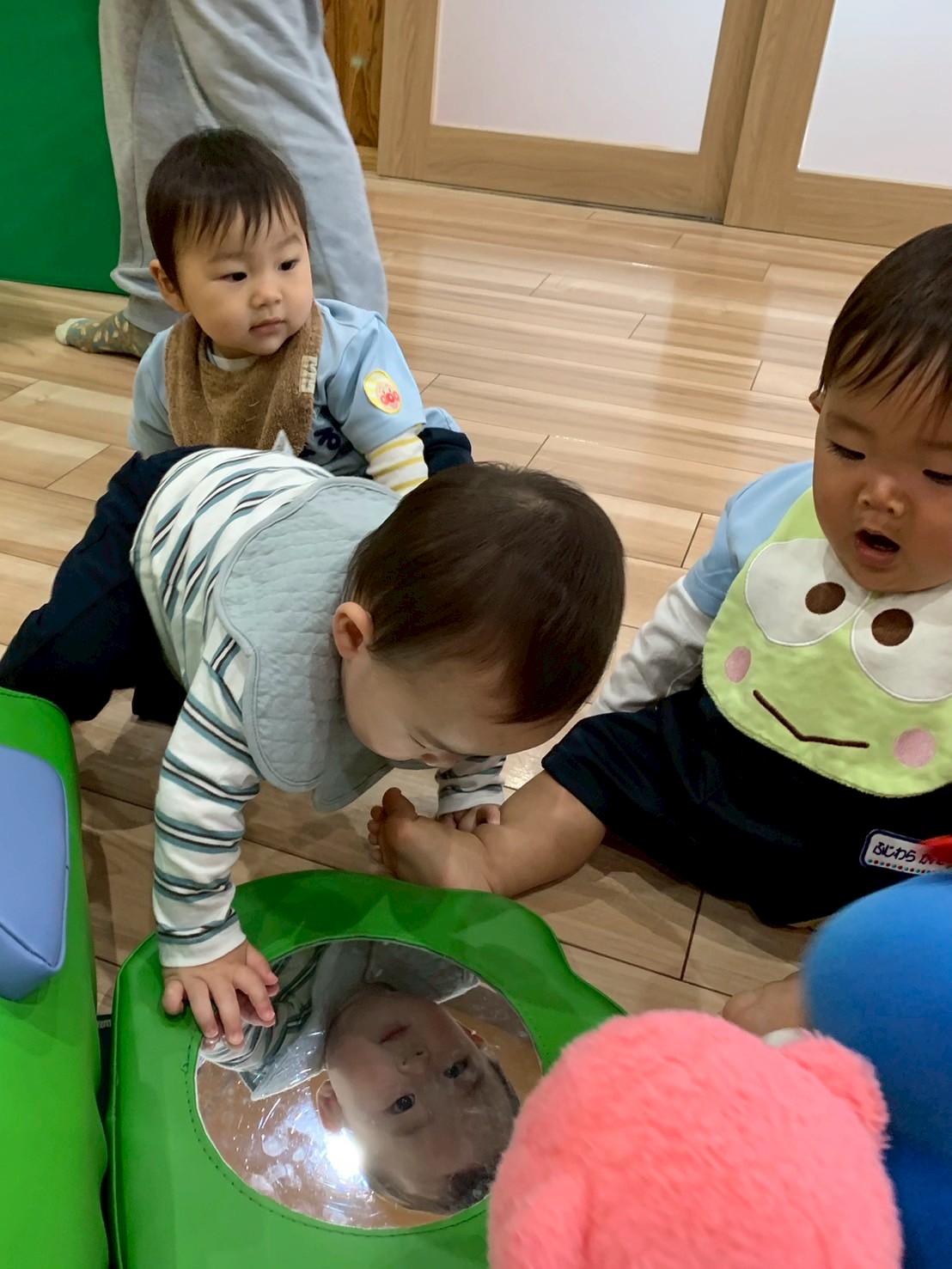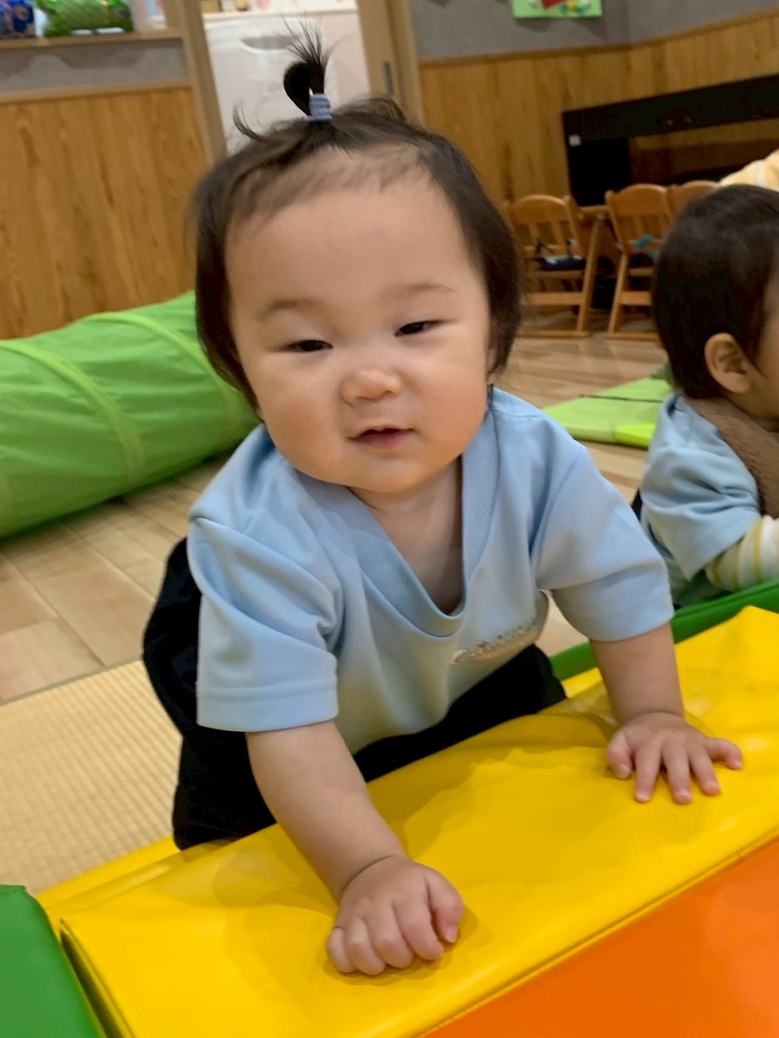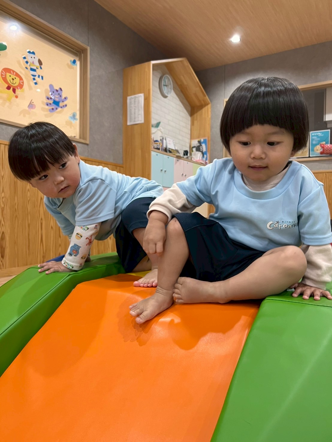 カメ型のプレイマットに上ろうと一斉にハイハイ競争のように向かっていきました😄上手に上り滑り下りる事ができていましたよ😊