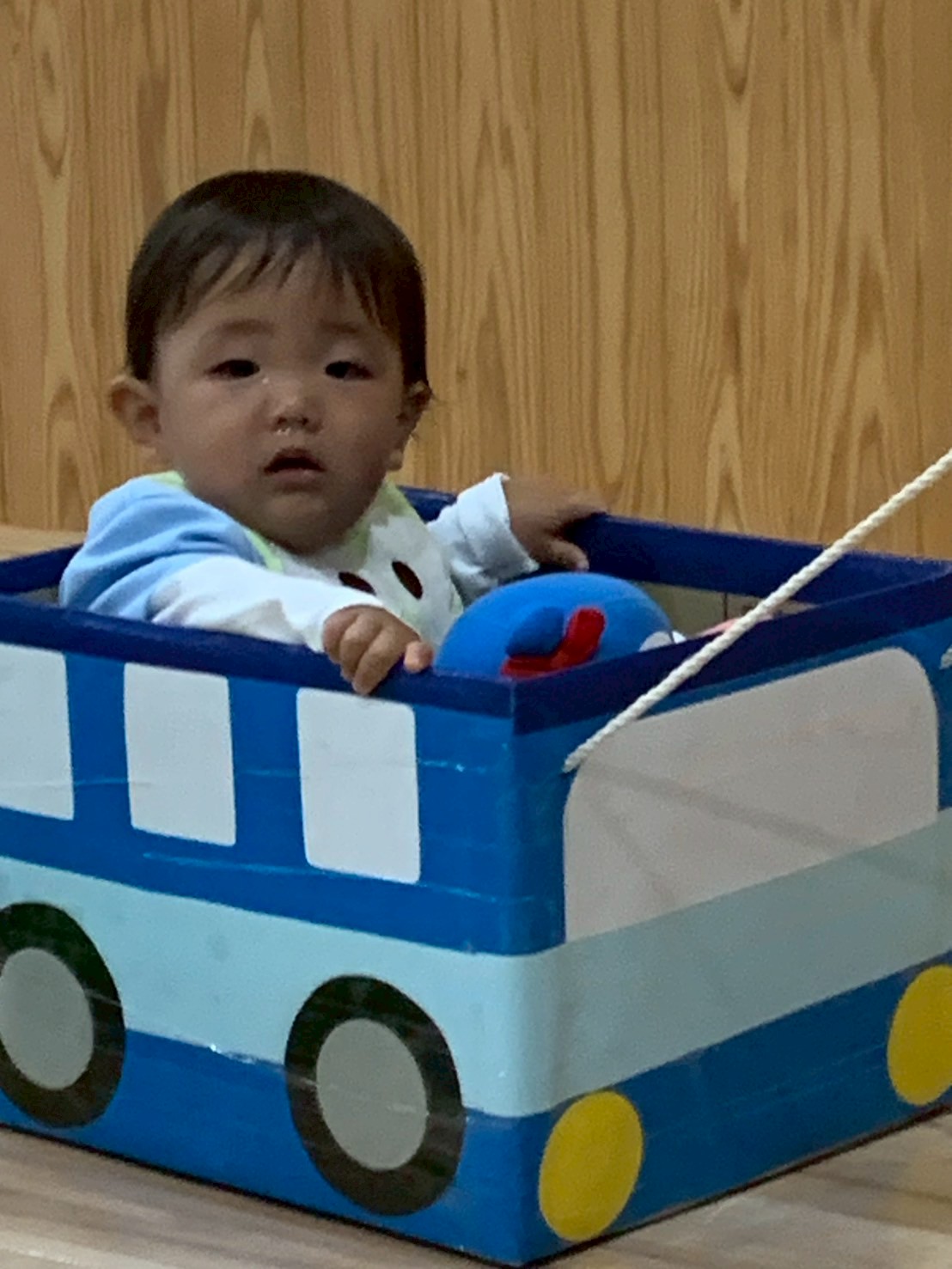 段ボールバスに乗っているお友だちを追いかけてハイハイしたり、楽しい音楽を流すとノリノリ🎵身体を揺らすお友だちもいました💕途中からりす組🐿️さんとも一緒に交流して楽しみました🥰りす🐿゙