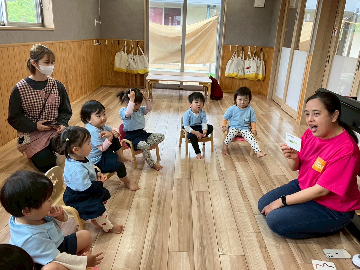今日も英語教室の先生に「グッモーニング!!」とご挨拶出来た子ども達😊