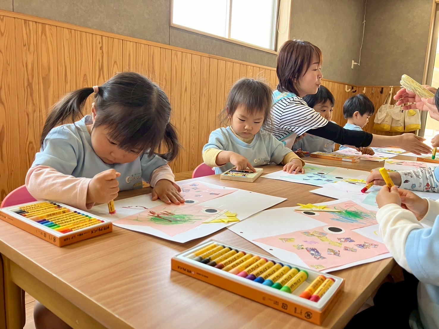その後は、鯉のぼりを画用紙に貼ったものに、お絵描きをしました✨
