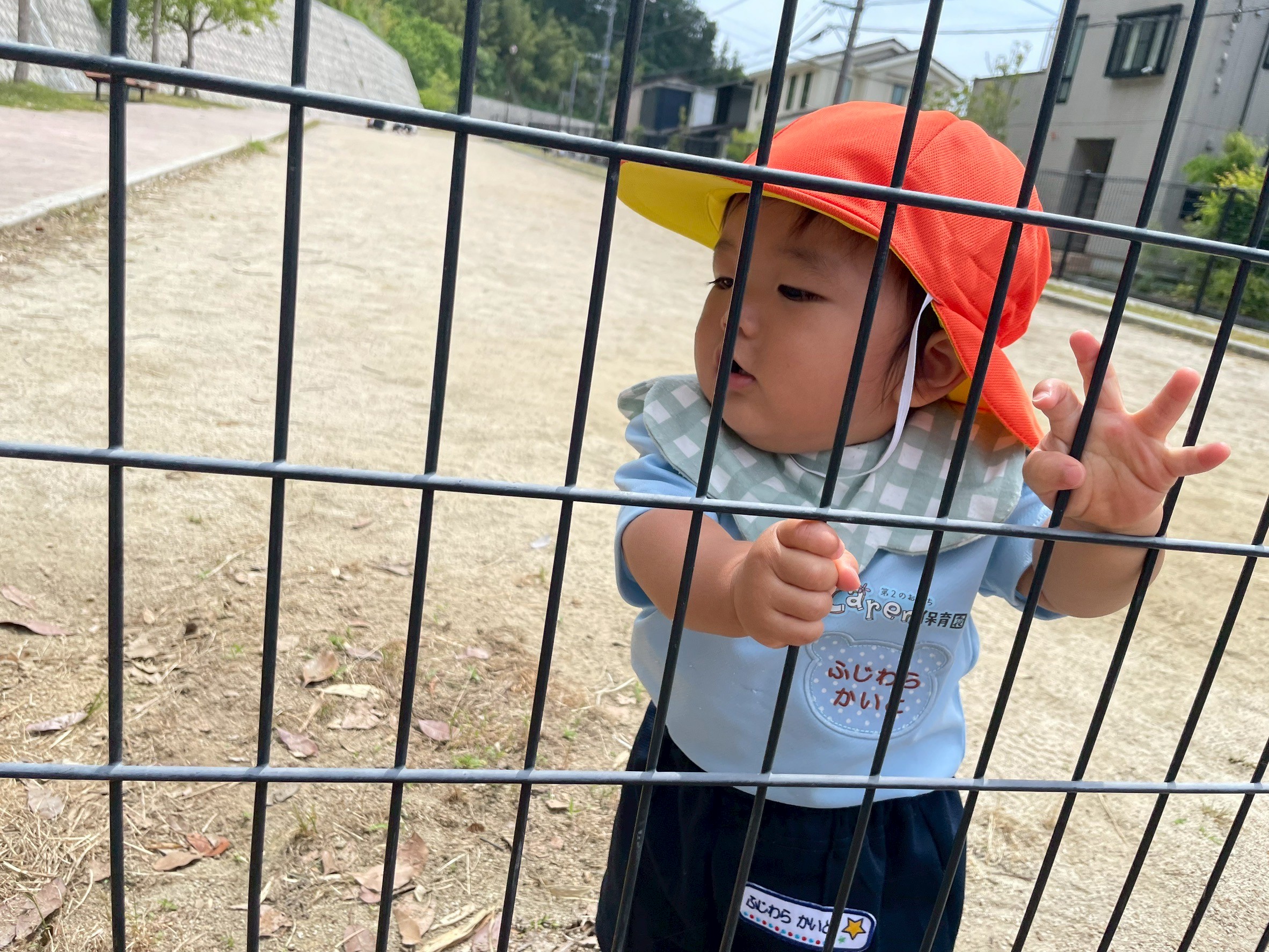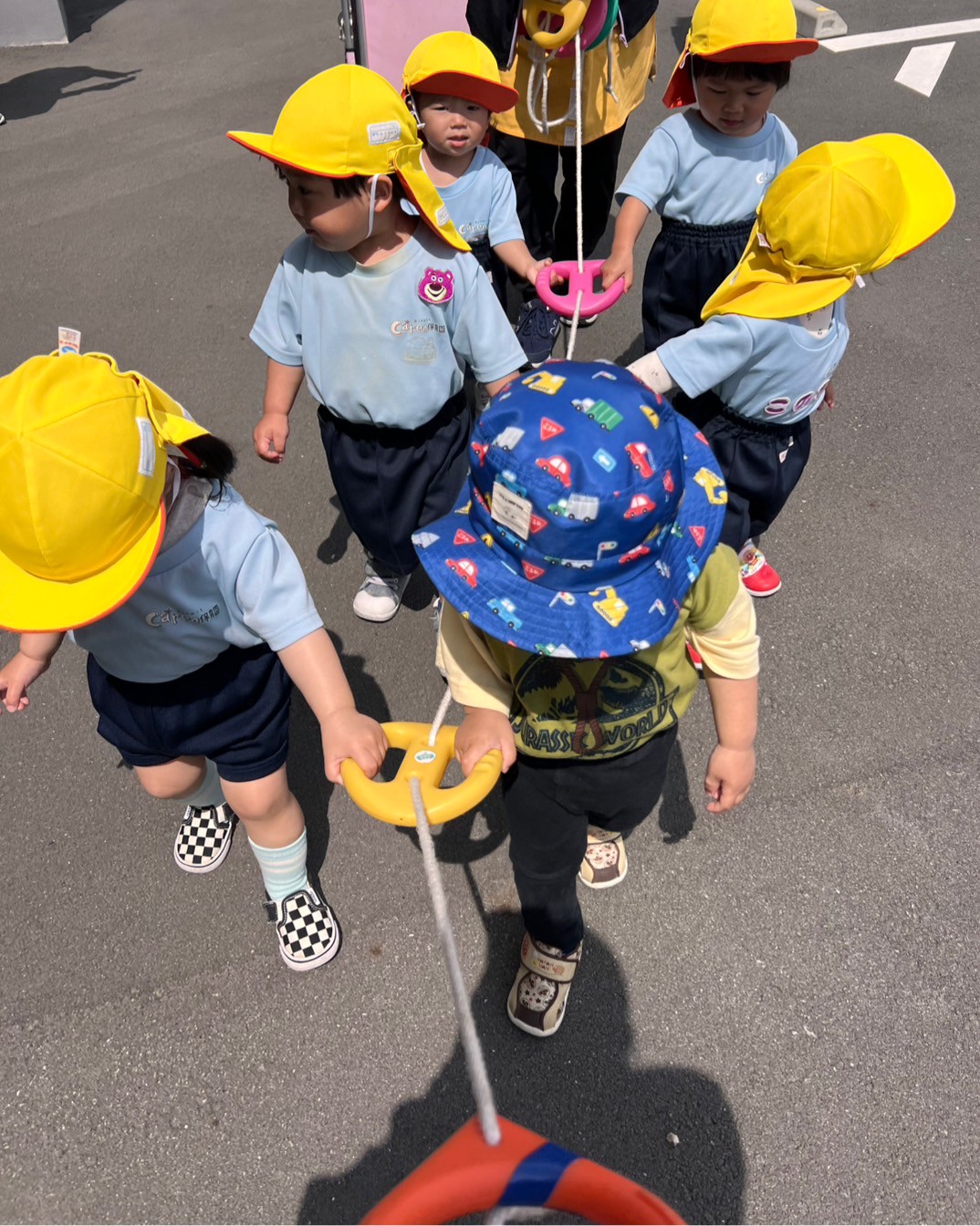 抱っこ紐の中で安心した様子で周りの景色を見たり、カートの縁をしっかり持ってりす組さんが誘導ロープでかっこよく歩く姿を見ながら向かいました😊