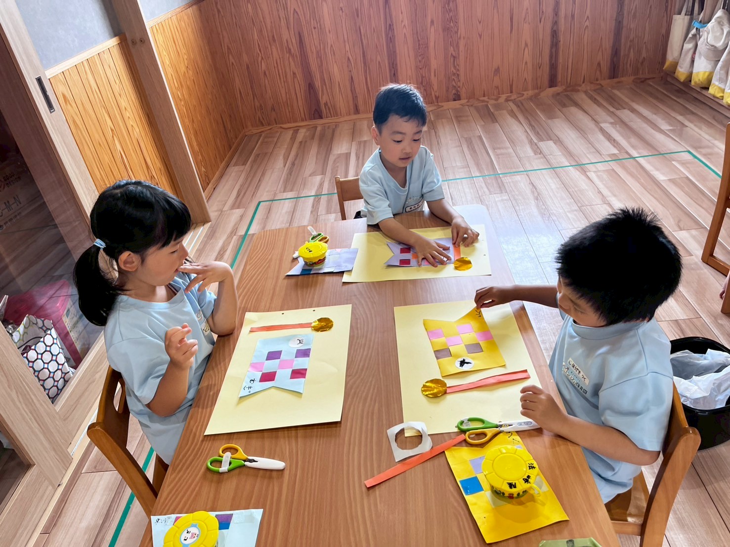 体操教室を待つ間は5月の月製作をしました🎏うさぎこあら組は鯉のぼりを糊付けした後クレヨンを使い鯉のぼりのまわりに絵を自由に描きました🖍️きりん組はハサミを使って鯉のぼりや画用紙を切って糊を付けました🤗その後は運動会遊戯の練習を園庭で行い、手具を持って大きく踊る練習をしました💕【くりえいと園の今日の給食です】