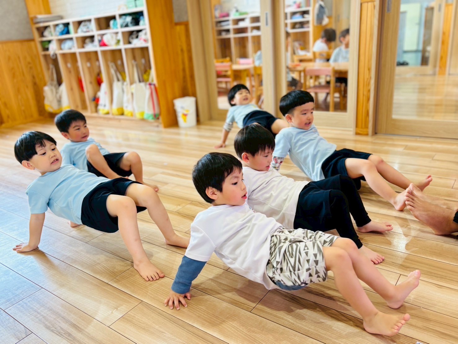 今日は体操教室がありました🫶🏻うさぎ組は動物歩きと前転、こあら組はラダーと走り込み前転、きりん組はラダーと側転をそれぞれ教えてもらいましたよ😆お手本のお友達がいたり、どのクラスも意欲的に取り組んでいました🤭
