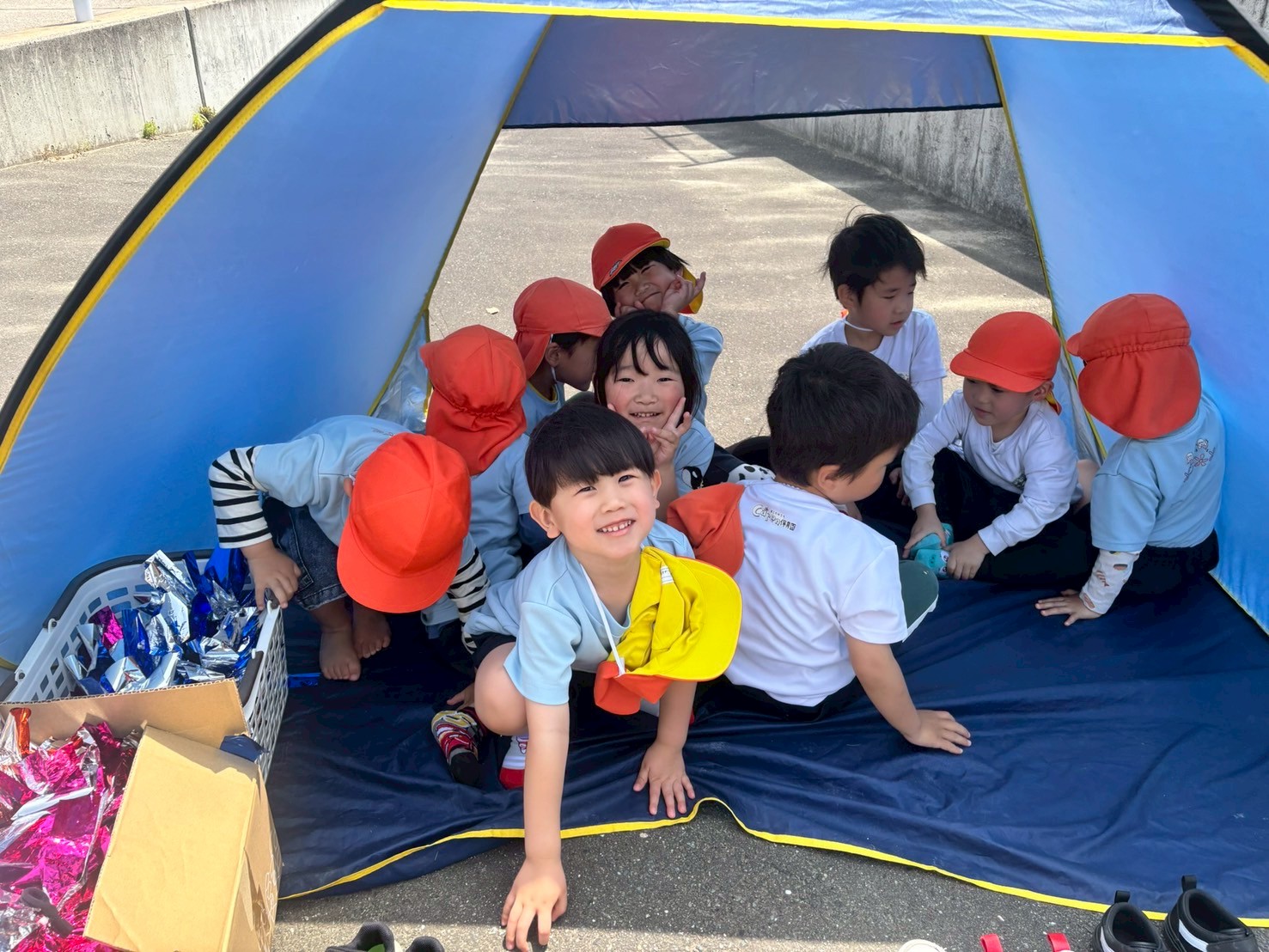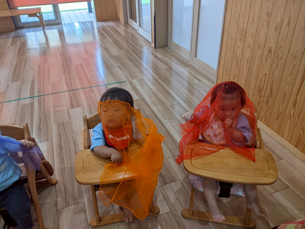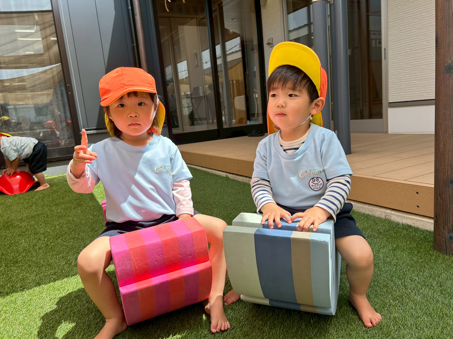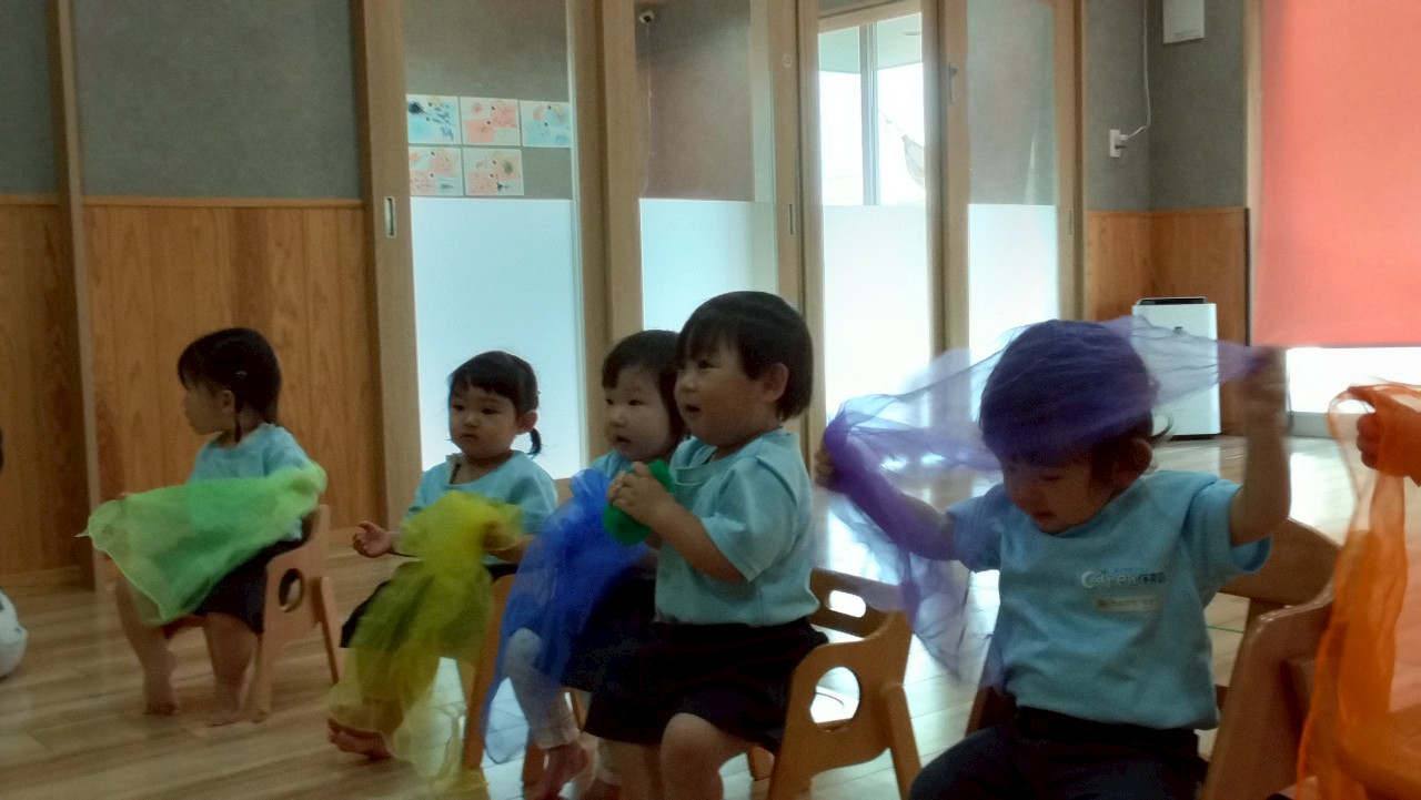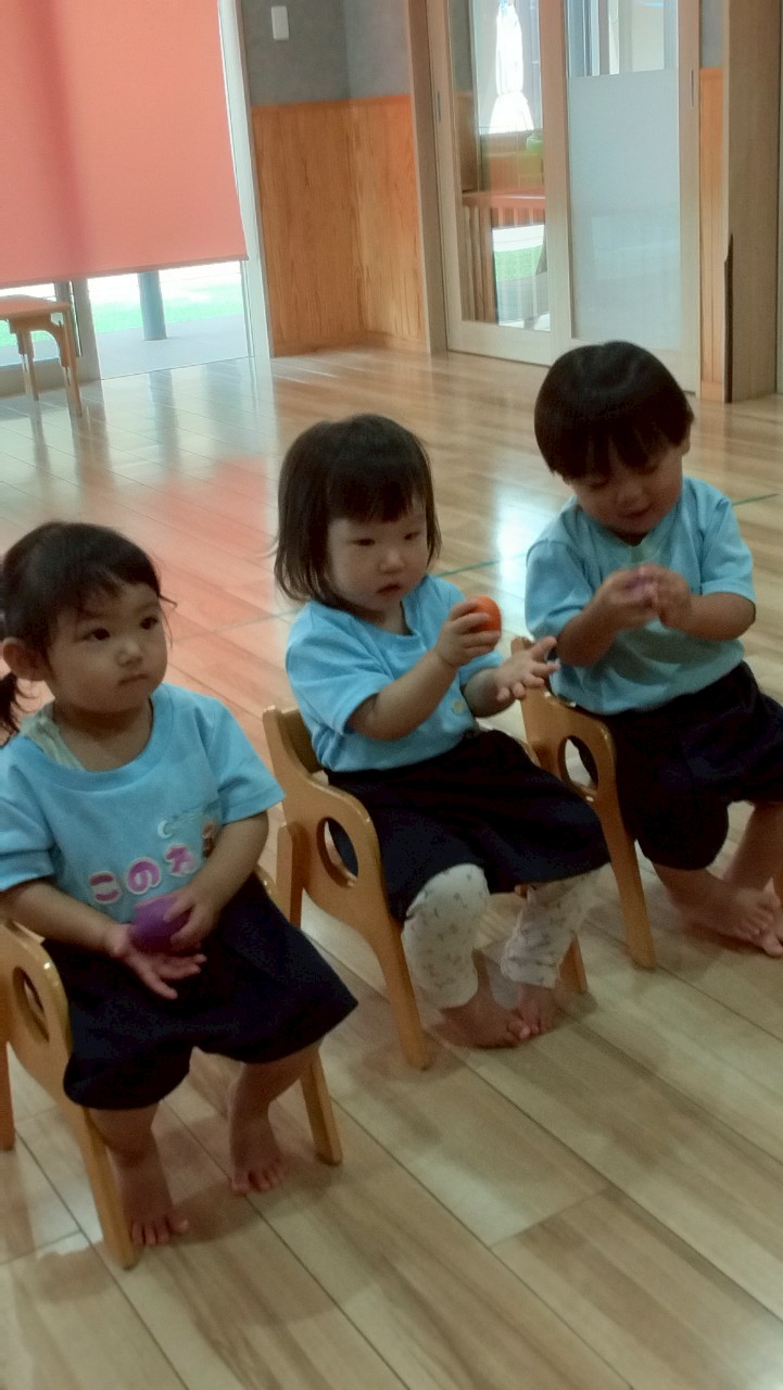 今日はリトミックに参加しました♫「ドアをあけたら〜」の絵本を「とん…とん…とん」と先生と一緒に興味津々で見ていました☺️たまごマラカスを歌に合わせてシャカシャカ〜とノリノリで鳴らしたりシフォンスカーフ🧣を揺らしてとっても楽しそうでしたよ😄💕その後はお部屋で大好きなシール遊びをしました✨小さな指先を上手く使ってペタペタとシールを貼って嬉しそうでした✌️それから園庭に出て🌞滑り台やウレタン遊具に挑戦してたくさん身体を動かして遊びました😆シャボン玉遊びではふわふわ飛んでいくシャボン玉を夢中で追いかける様子もかわいい子ども達でした💕昨日の遠足に負けない位元気パワー全開でした🥰ぱんだ(パンダ)組