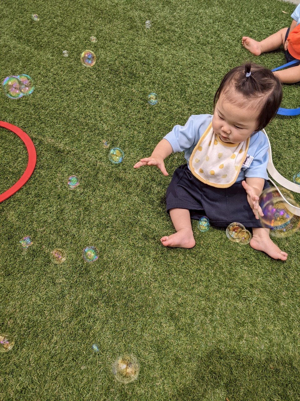 シャボン玉を捕まえようと手を伸ばす姿がとても可愛いひよこ🐥さんでしたよ🥰りす組🐿️