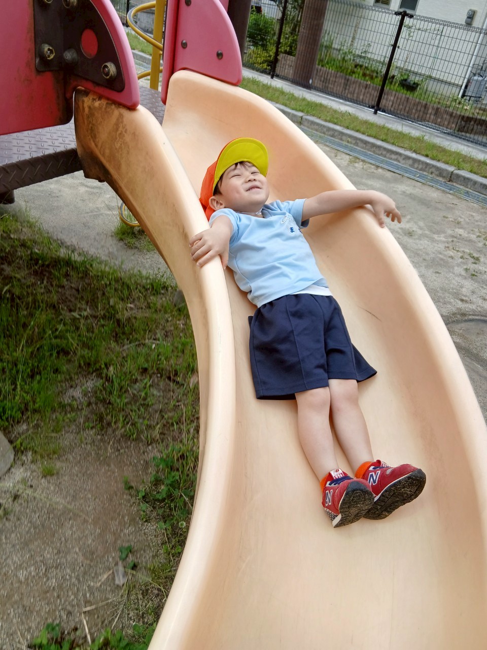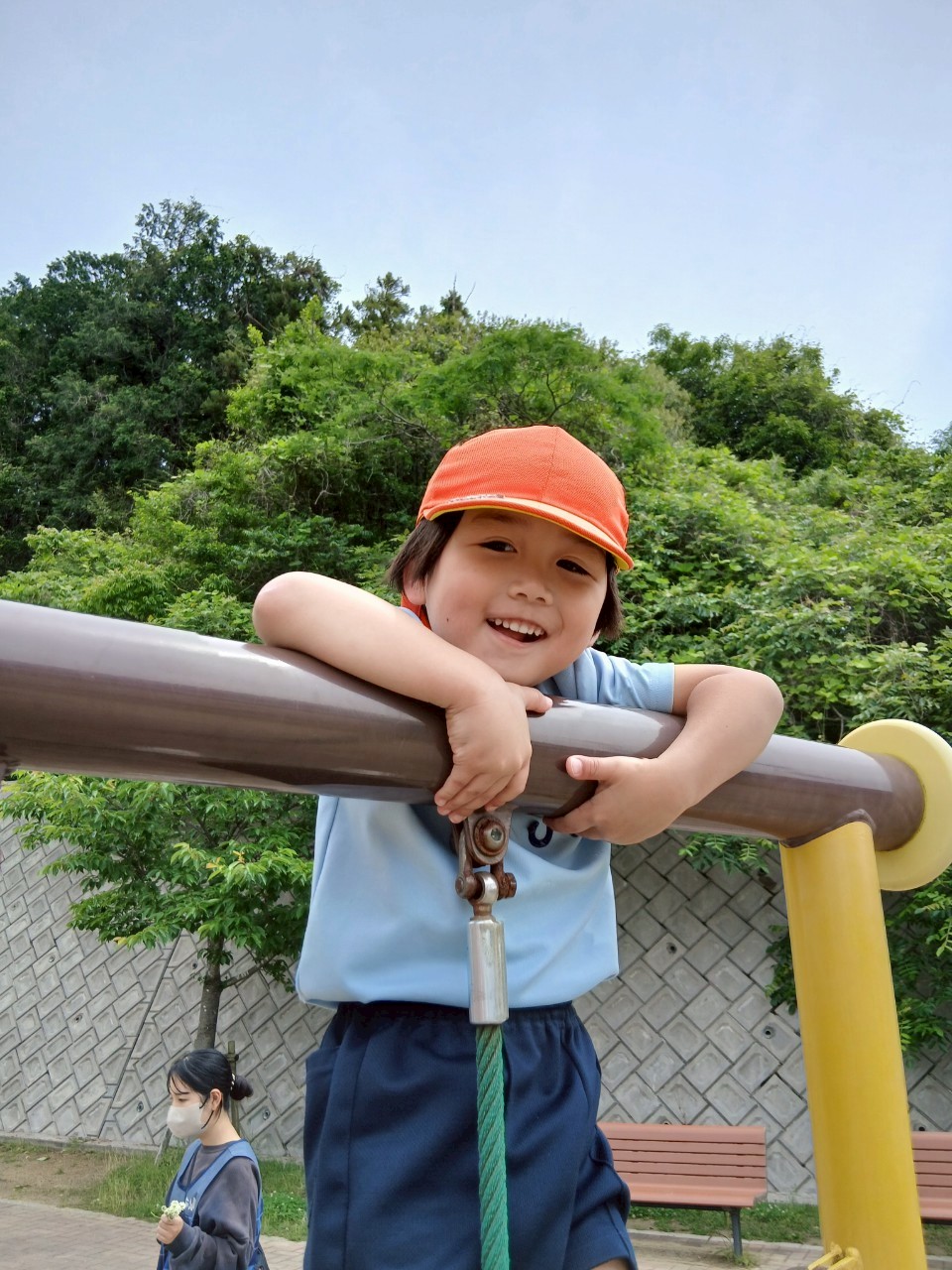 公園の遊具でおもいっきり遊んだり、周りに咲いていたシロツメクサを見つけて、先生から指輪💍を作ってもらったり、氷り鬼👹をして遊んだり、うさぎぐみさんはちょっと難しいロープを使って上に登る事にチャレンジしていましたよ🤗 蒸し暑かったので水分補給もこまめにとりながらみんなで楽しんで遊ぶ事ができました👏