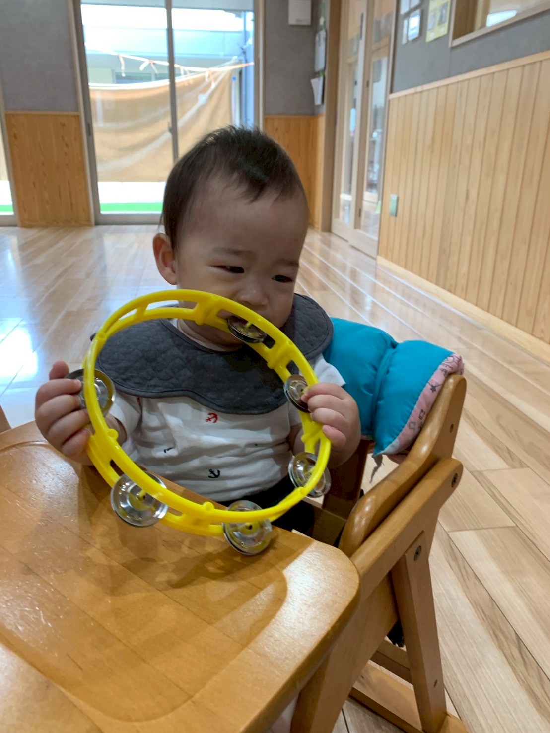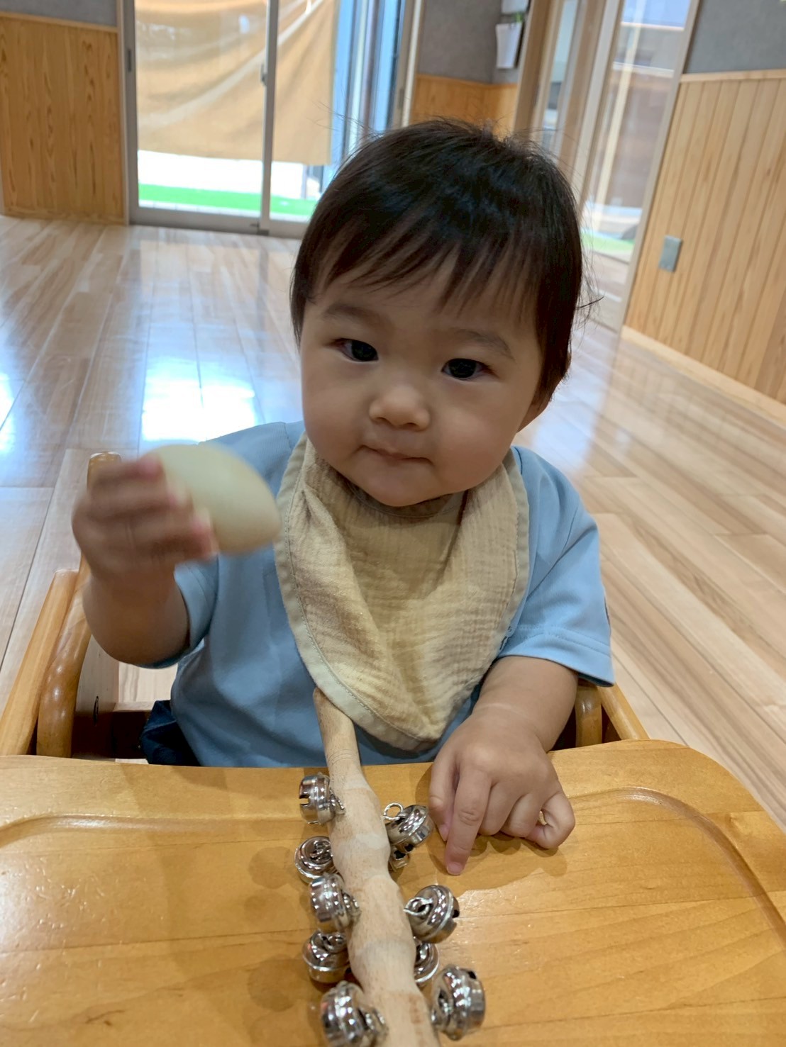 今日は色んな楽器に触れて遊びました✨タンバリンや鈴やマラカス、カスタネットにトライアングル!振ったり叩いたりして楽器の音色を聞きましたよ🎵