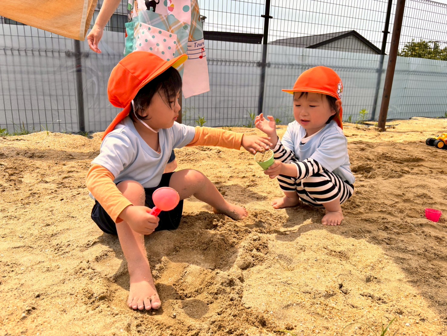 その後は園庭に出て砂場やボールや滑り台で好きな遊びをしました😁お友だちと協力してアイスを作ったり、冷たい砂場に足を埋めてみたりと楽しく遊ぶ事が出来ました☺️🩷うさぎ🐰こあら🐨きりん🦒ぐみ☘️