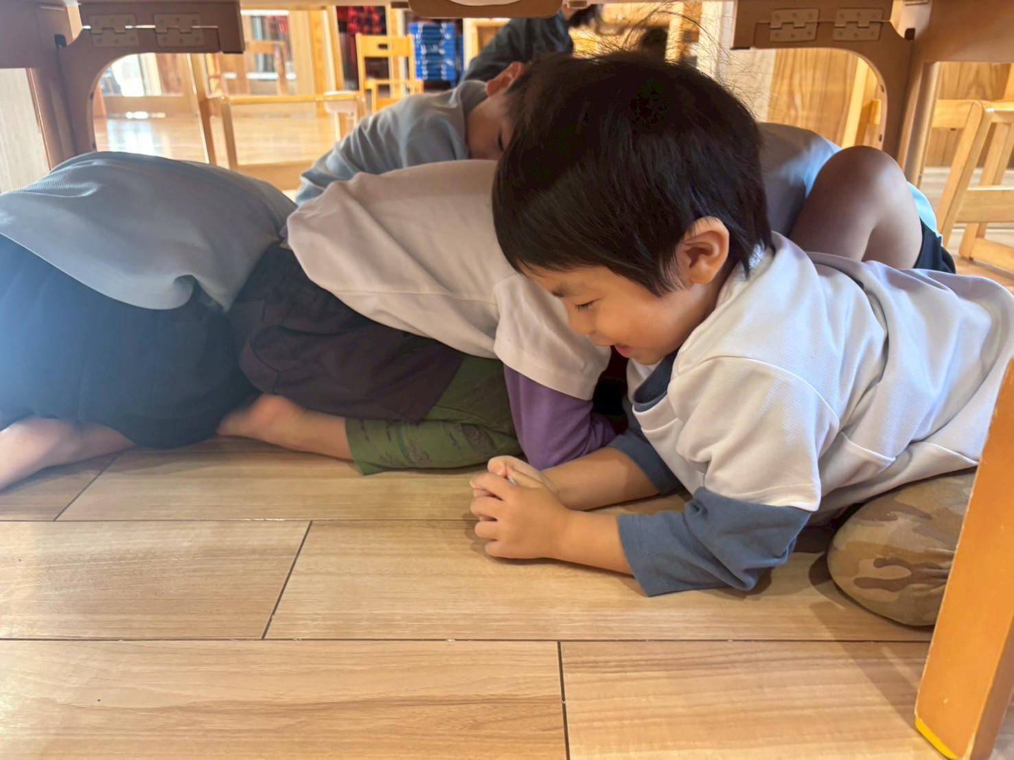 今日は突然の避難訓練をしました✨緊急地震速報の音に驚くことはあったものの、すぐにダンゴムシのポーズで机の下に入ることができていました☺️