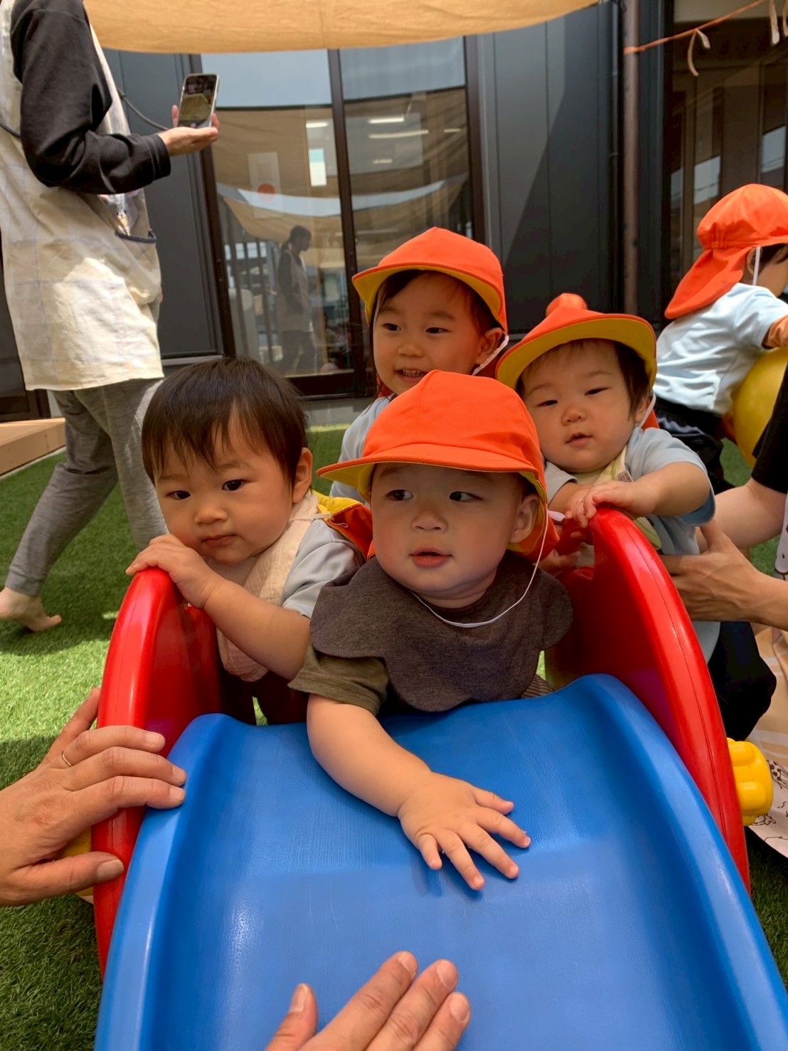 滑り台の階段を自分で登ろうと頑張る姿も見られましたよ!
