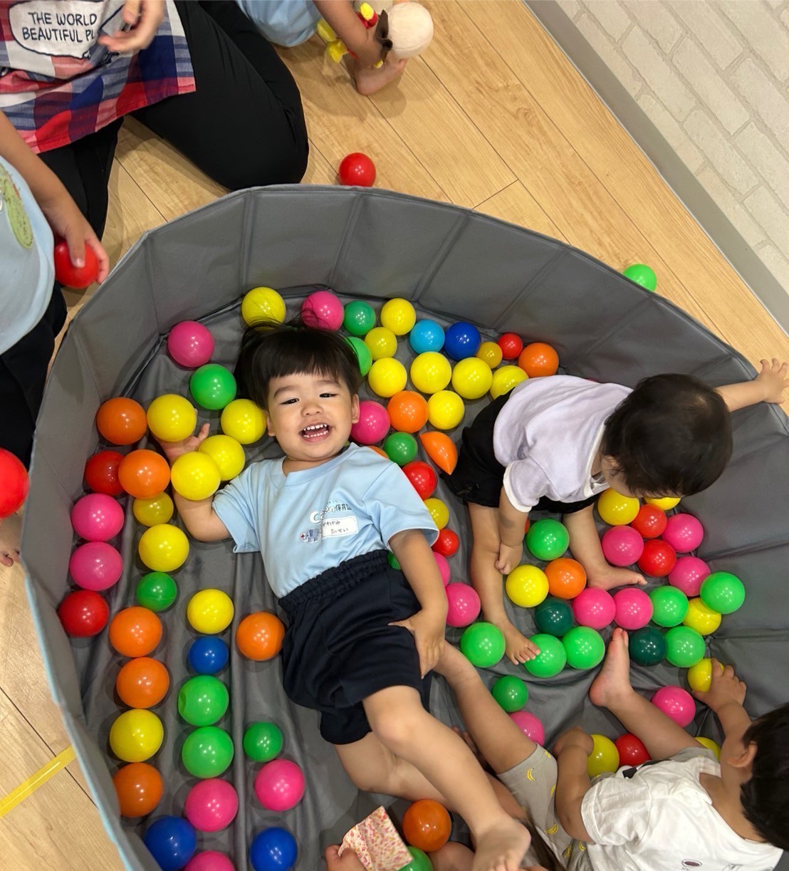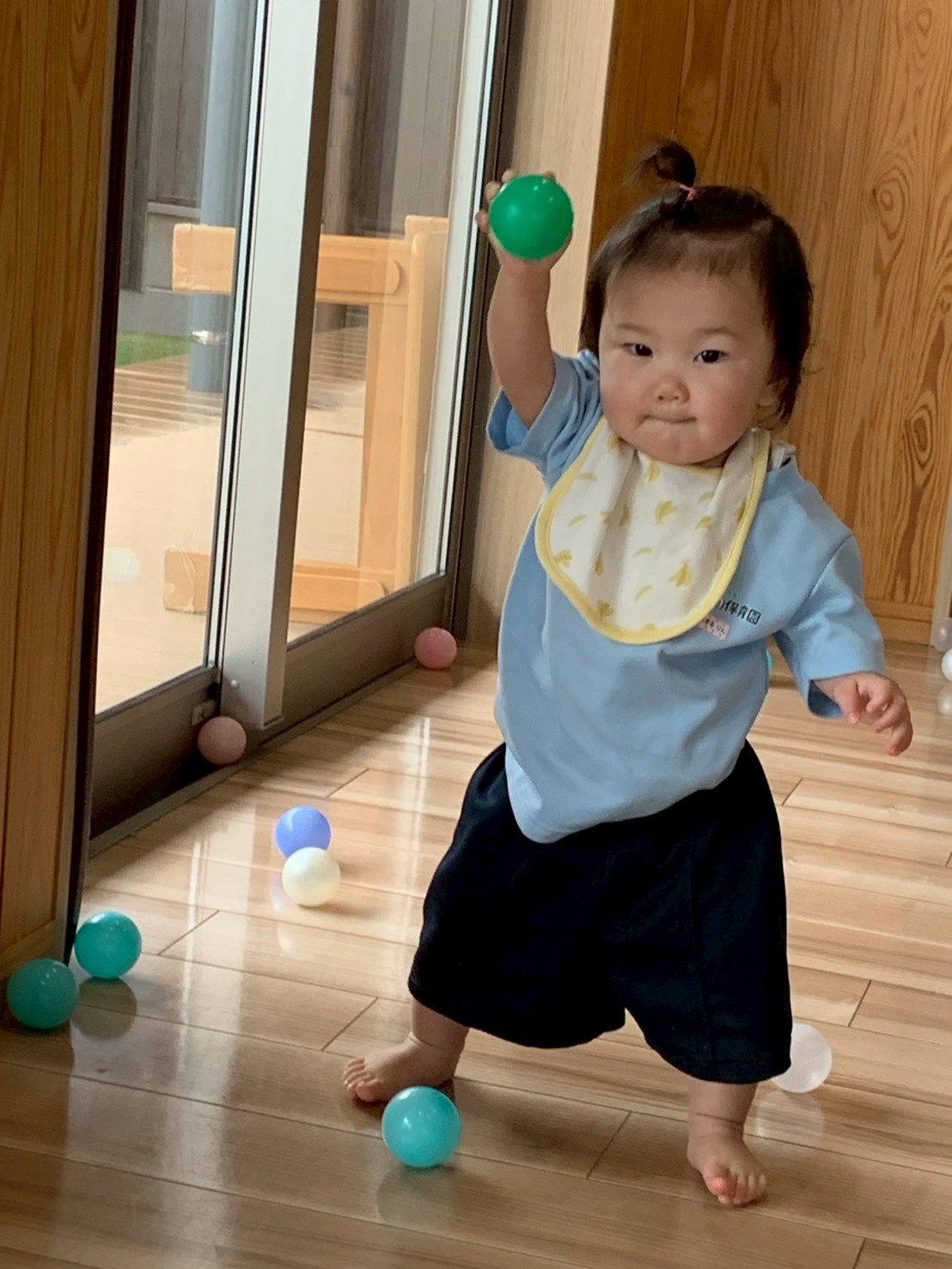 その後は室内でひよこ組さんと一緒にボール遊びをし体を動かしました💪ぱんだ組