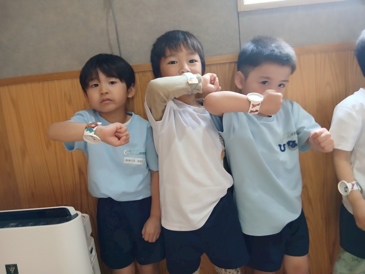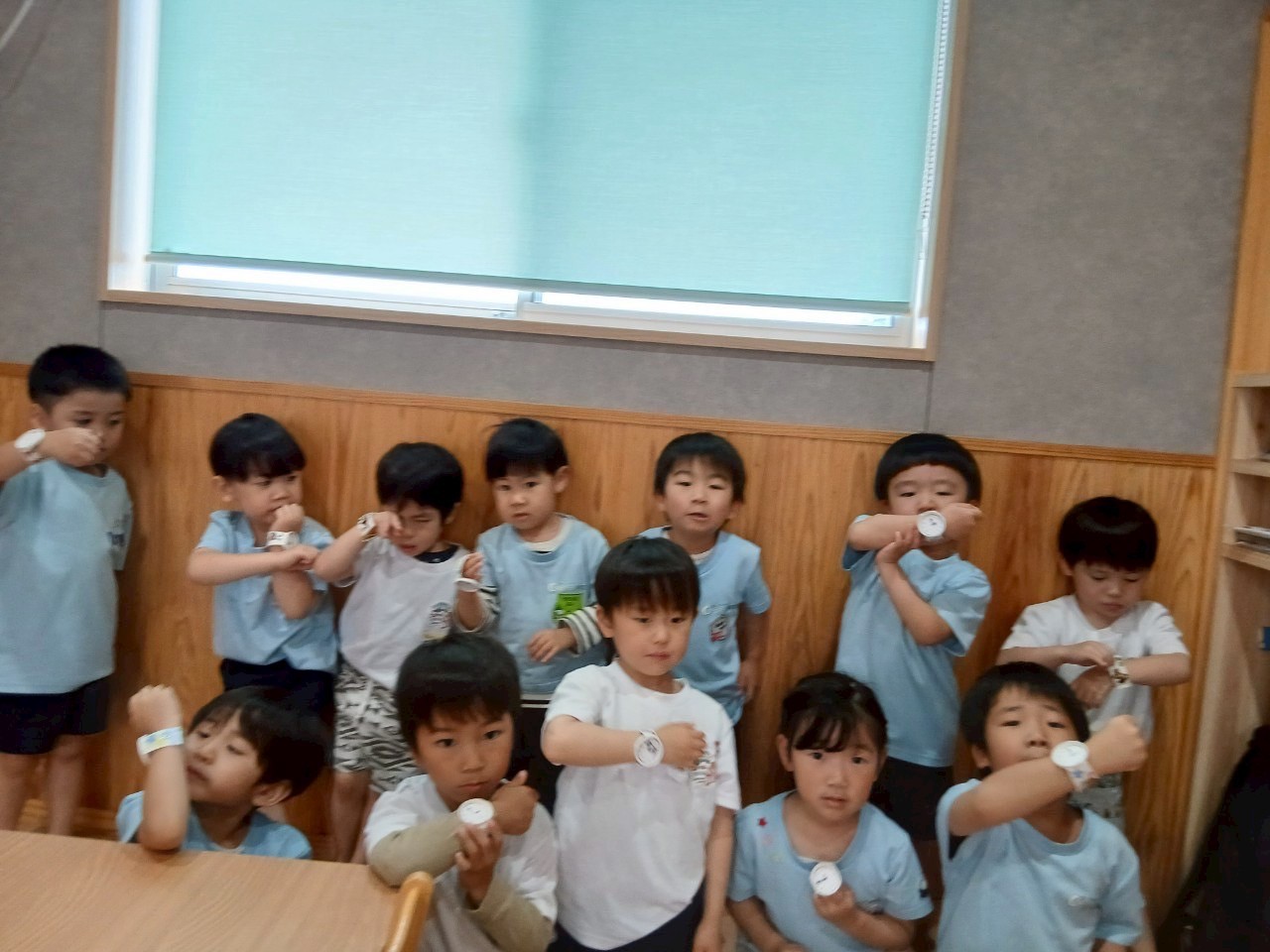 時間についてや、時間の大切さについてお話しました✨時計を読める子読めない子といましたが時計に興味を持つきっかけとなりました☺️🎶シール貼りや大人の針、子どもの針と自分で書いていきました😄一人ひとり可愛いらしい時計が出来ました⌚️