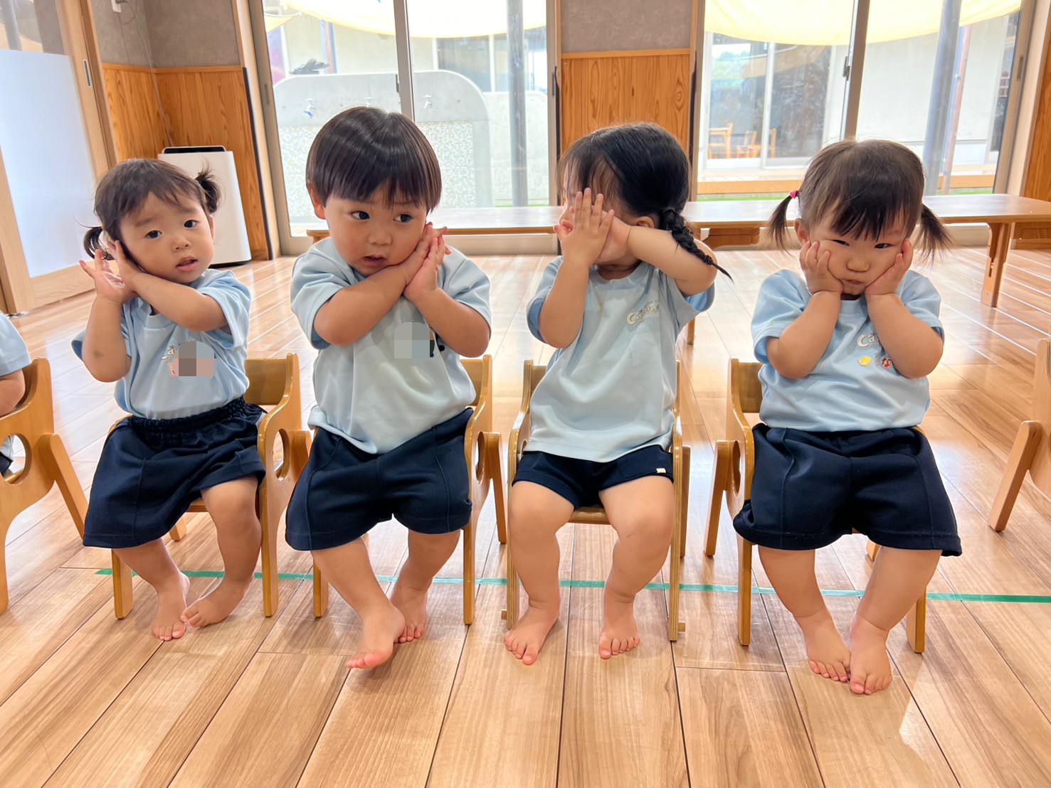 そのあとは、運動会に向けてかけっこの練習をした後さくらんぼリズムの動きをゆっくり確認していきましたよ😌先生の動きをよく見ながら体を動かしていて流れも覚えてきた様子です🙌