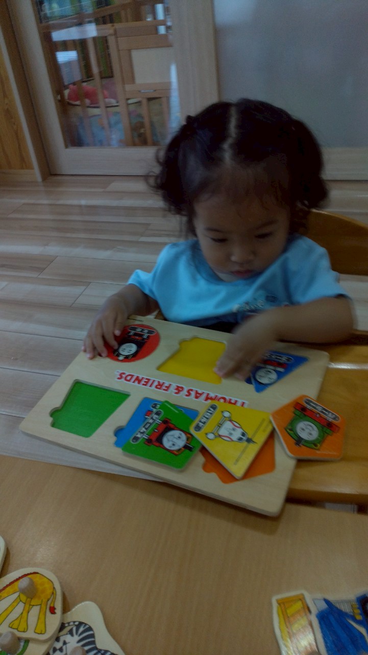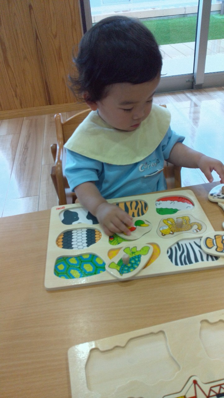 今日は楽器遊びからスタートしました🥁♪興味のある楽器を選んで♪おもちゃのチャチャチャや大きな太鼓の歌に合わせてタンバリンや鈴を鳴らしてノリノリでした🥰それからパズル遊びをしました🧩動物や車の絵柄や形、色をよ〜く見ながら1つ1つパーツをはめ込んで完成すると大満足そうでしたよ☺️その後はボールやワニさん階段、PEテープ飛ばし遊びをしました✨身体も気持ちも発散してにこにこ元気に過ごしました😆💕