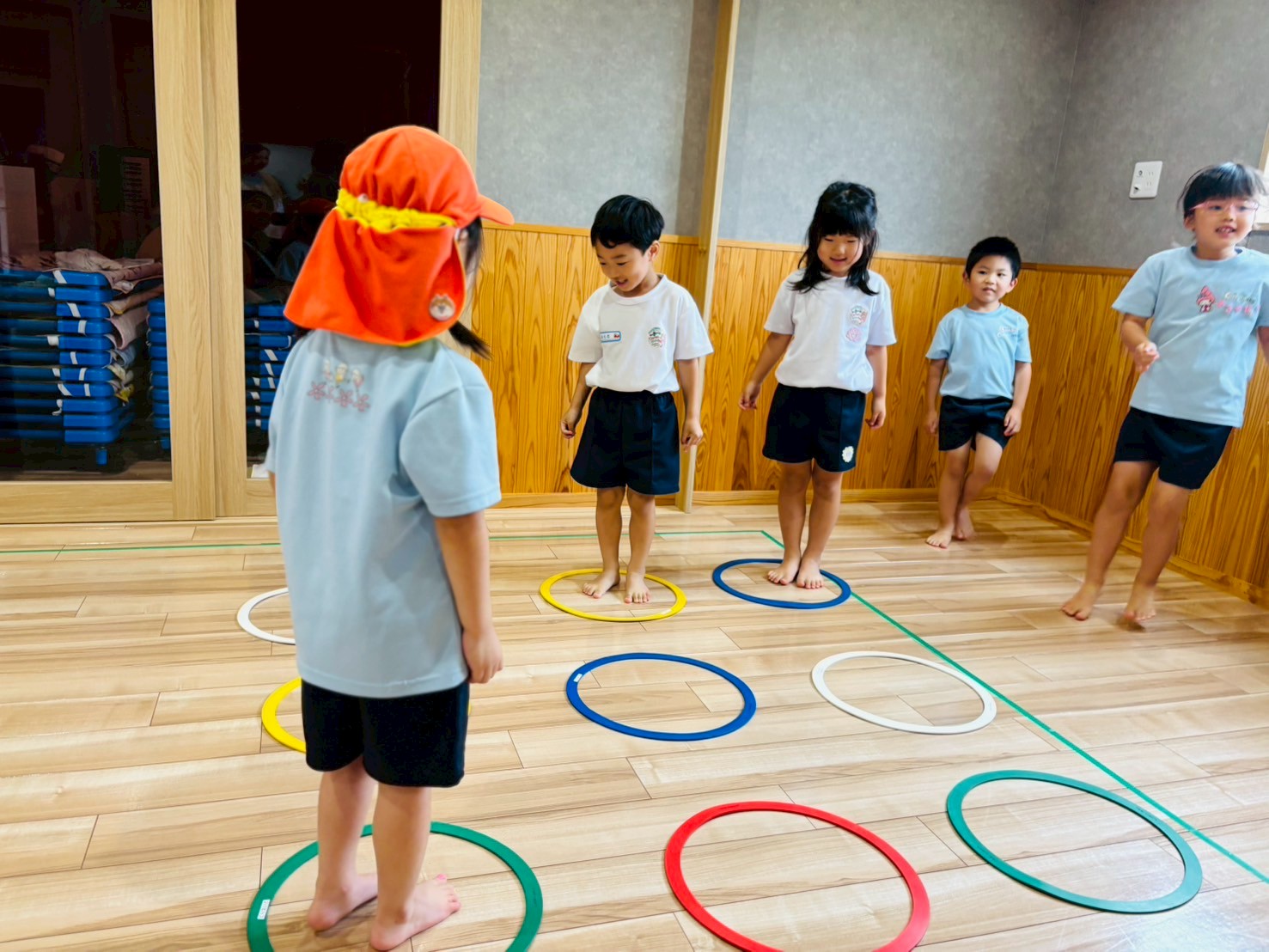 その後は9マス鬼をして、1・2・3のリズムに合わせて鬼ごっこを楽しみましたよ🤭