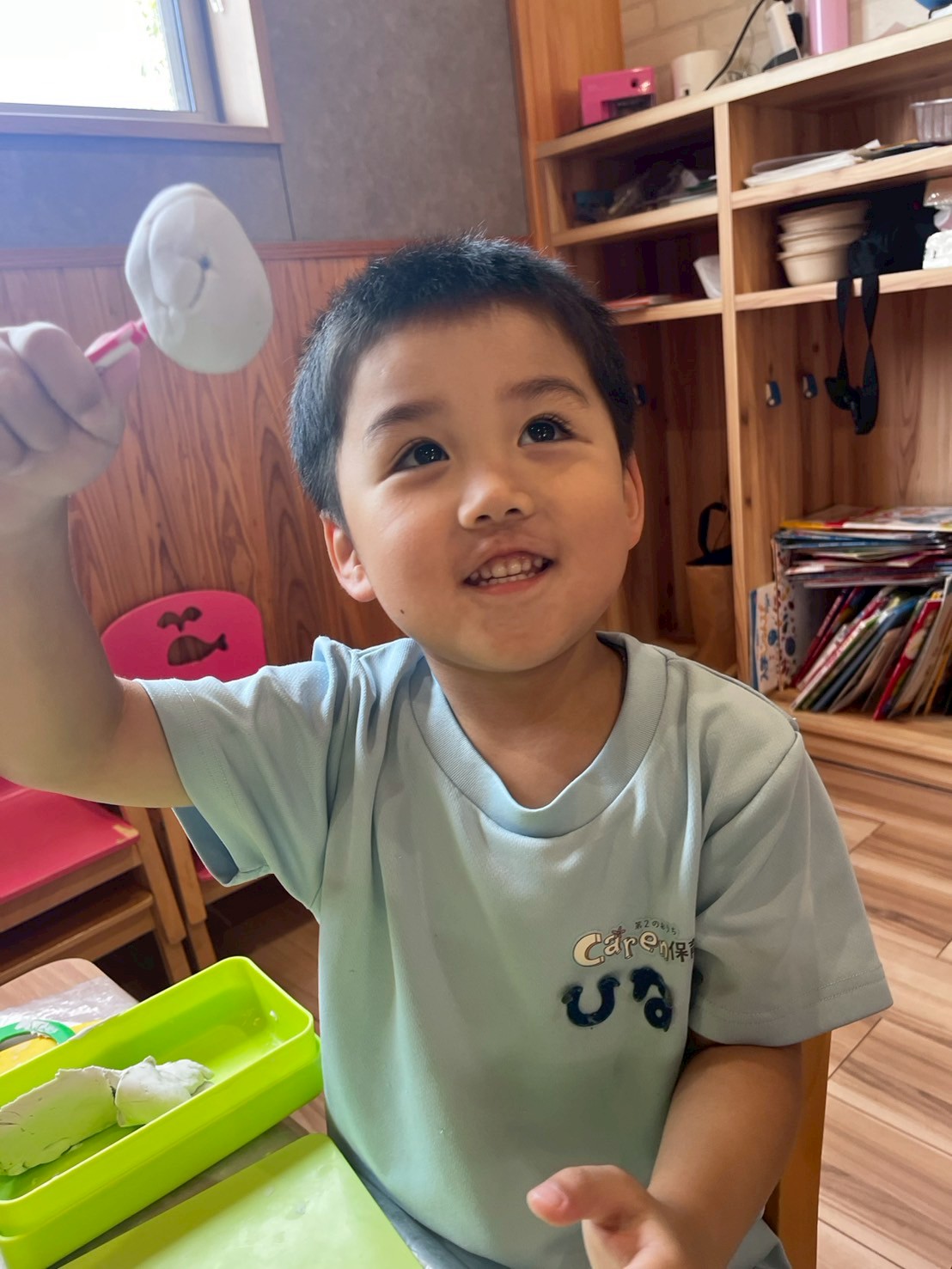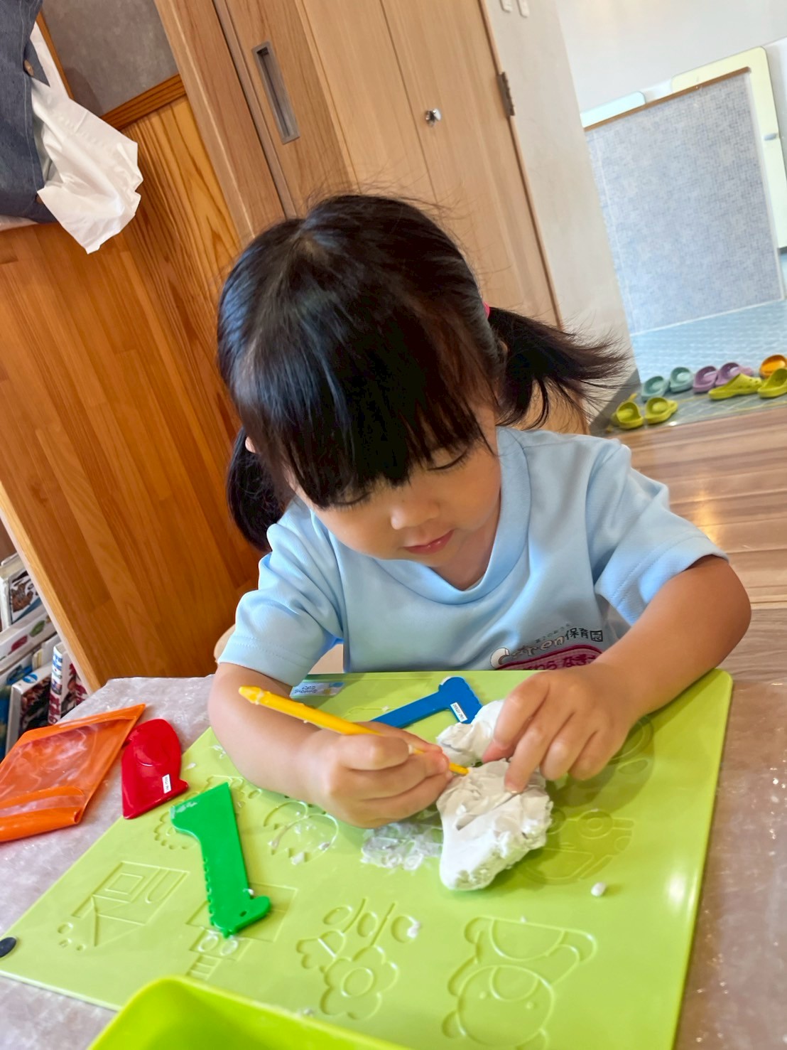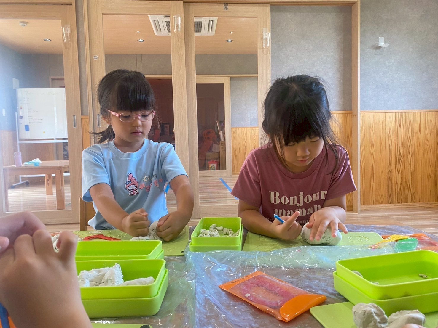 今日はまず粘土遊びをしました☺️テーブルのお友達と楽しく話しながらそれぞれ好きなものを作りました🎶「先生お寿司作ったよ🍣」や「細長く伸ばせたよ!」など保育者に嬉しそうに見せてくれた😊その後ボールゲームをしました⭐️保育者がフープにクリアテープを貼ったものやプラスチックのコップなどを壁に貼り付けて、まずはクラスごとに多くカラーボールをケースに入れるか競いあいました✊🏻次は子どもたち対保育者で競い、今回は保育者が勝ちましたが「楽しかった✨」と喜んでくれてよかったです💕最後はみんなで素早くお片付けもできました👏🏻✨【くりえいと園の今日の給食です】