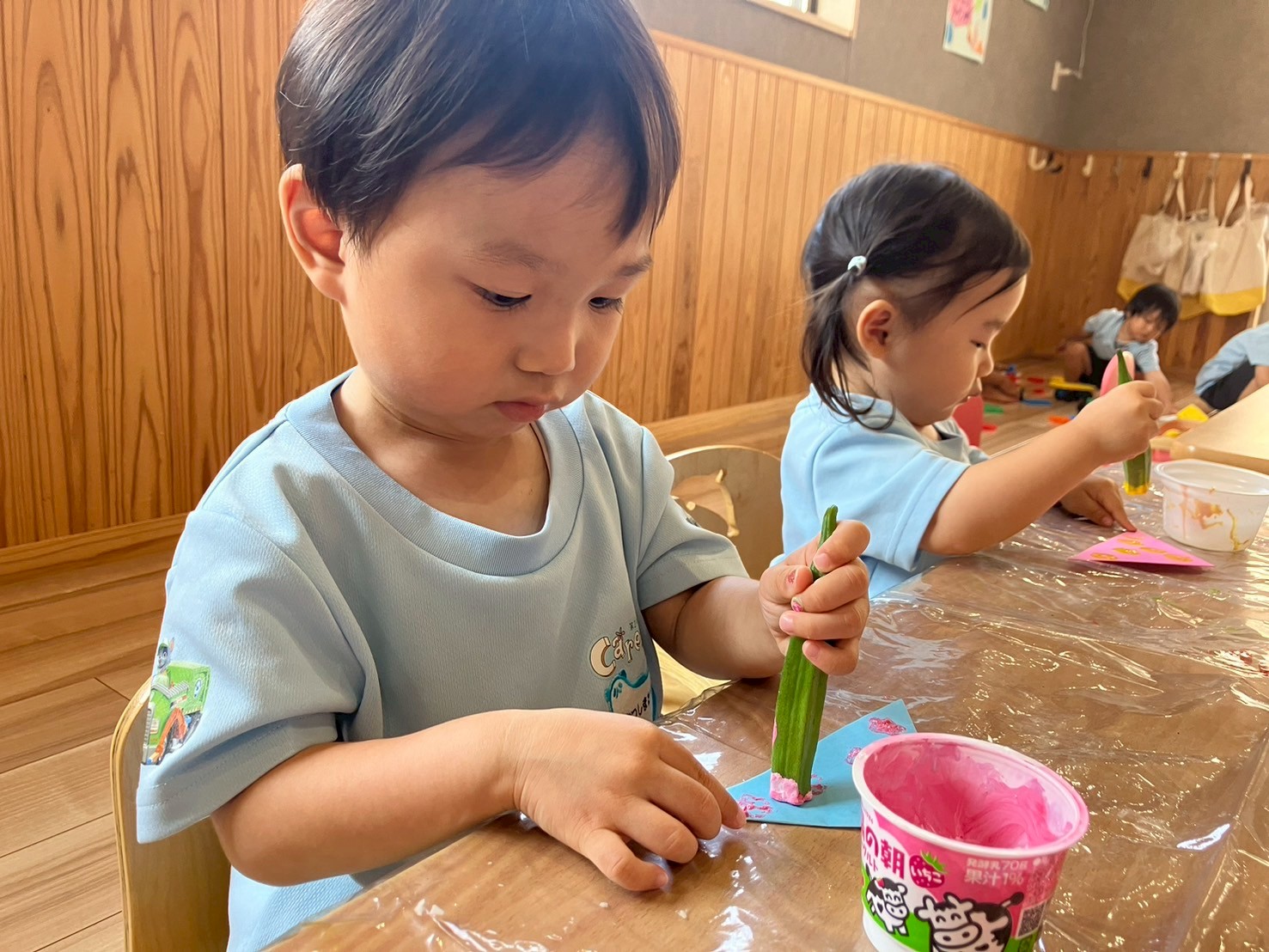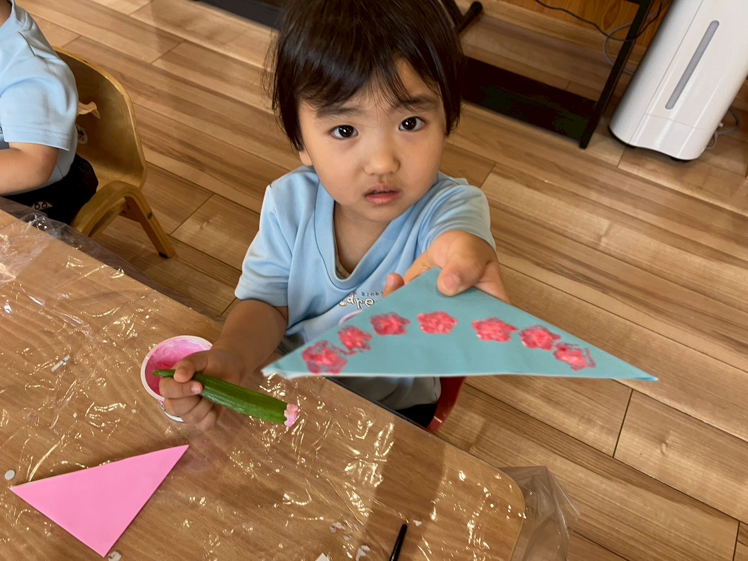 「絵の具好きー!」と楽しく製作ができました💕その後園庭でたくさん走りました☀️