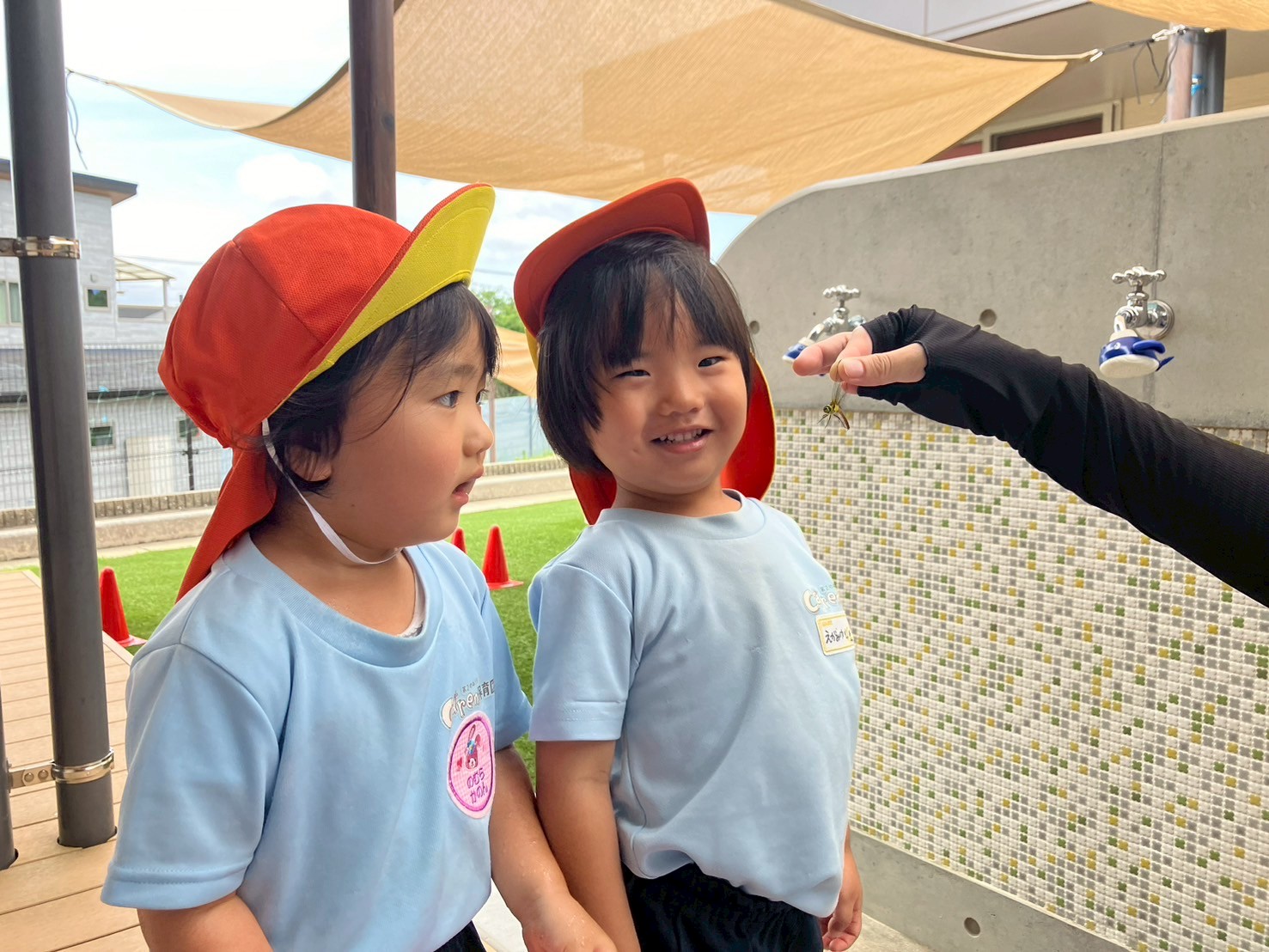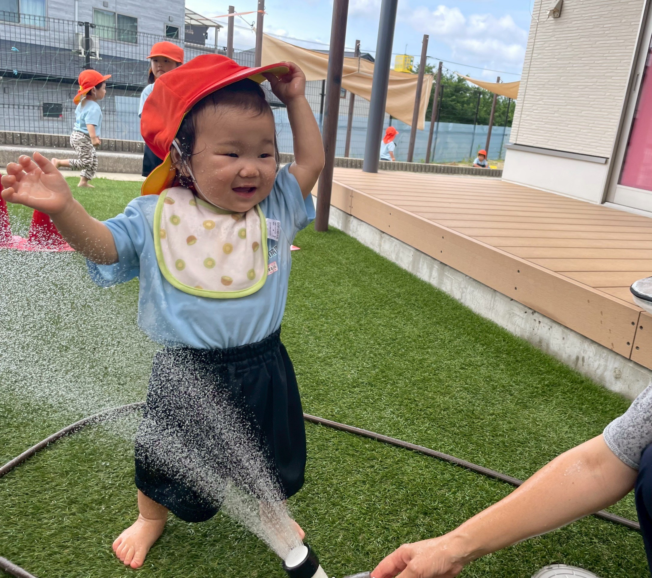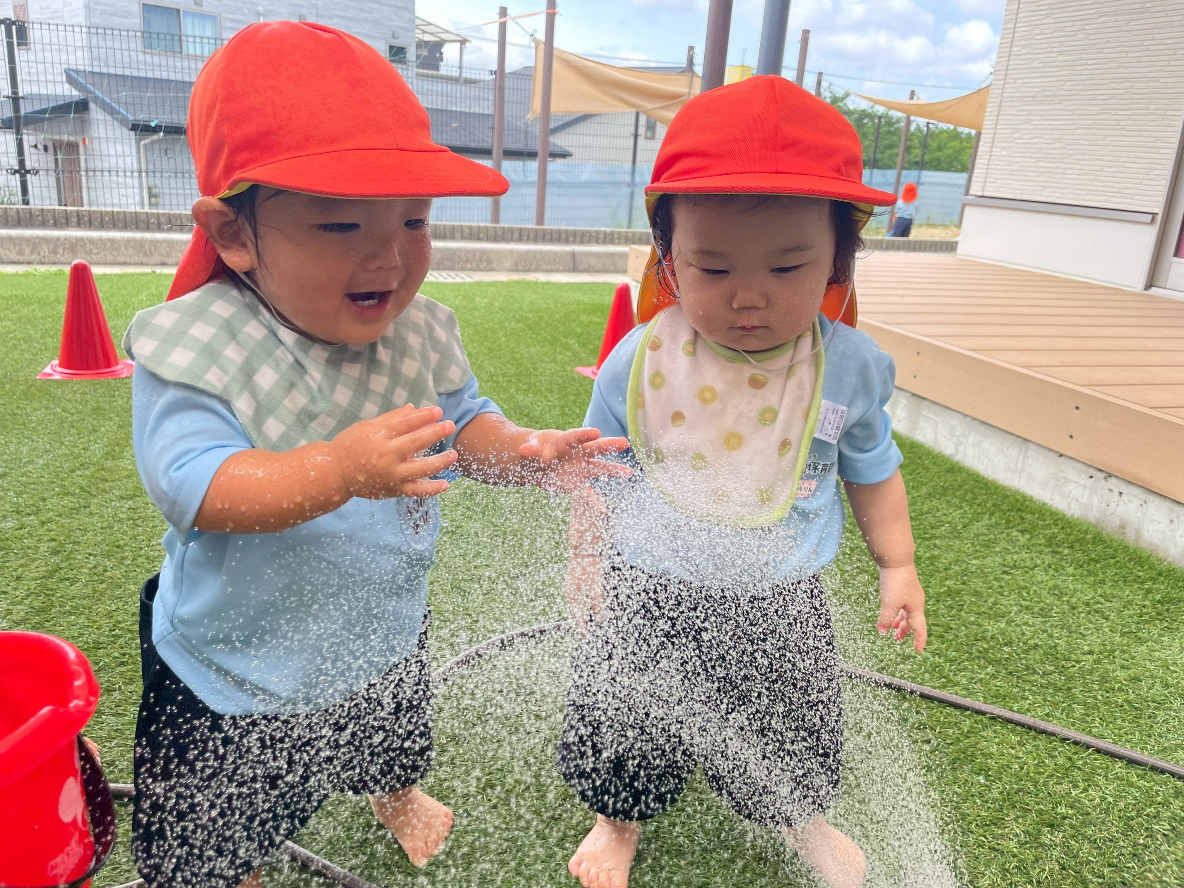 霧吹きの水にも嬉しそうに手を伸ばしたり、ホースから出る水にも怖がらずに近づいていっていました🥰
