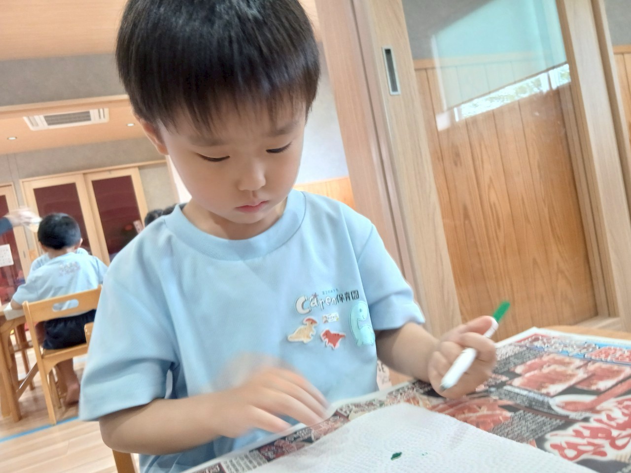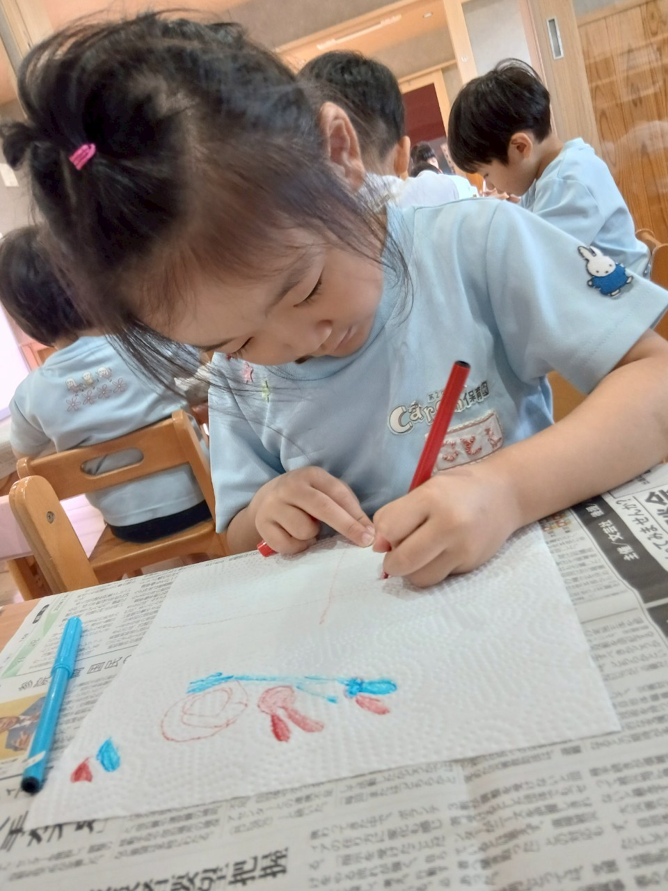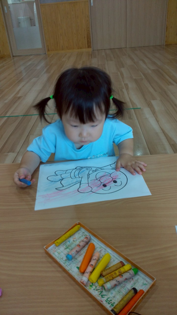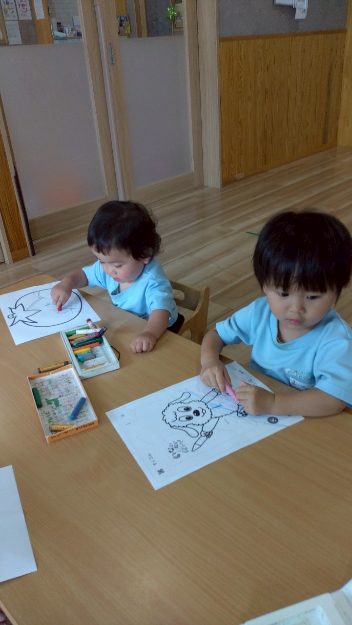 今日はお部屋でお絵かきをしました🖍️好きなキャラクターを選んでクレヨンで夢中で描いていた子ども達でした☺️「あか!」「あお!」と言葉にしながらいろいろな色を楽しんでいるお友だちもいましたよ💕色への興味を楽しみながら満たしていました✌️✨その後は園庭に出てひよこ組さんやぱんだ組さんに仲間入りして遊びました🌞滑り台に挑戦したりバケツ🪣の水で水遊びを楽しみました😆💕ぱんだ組