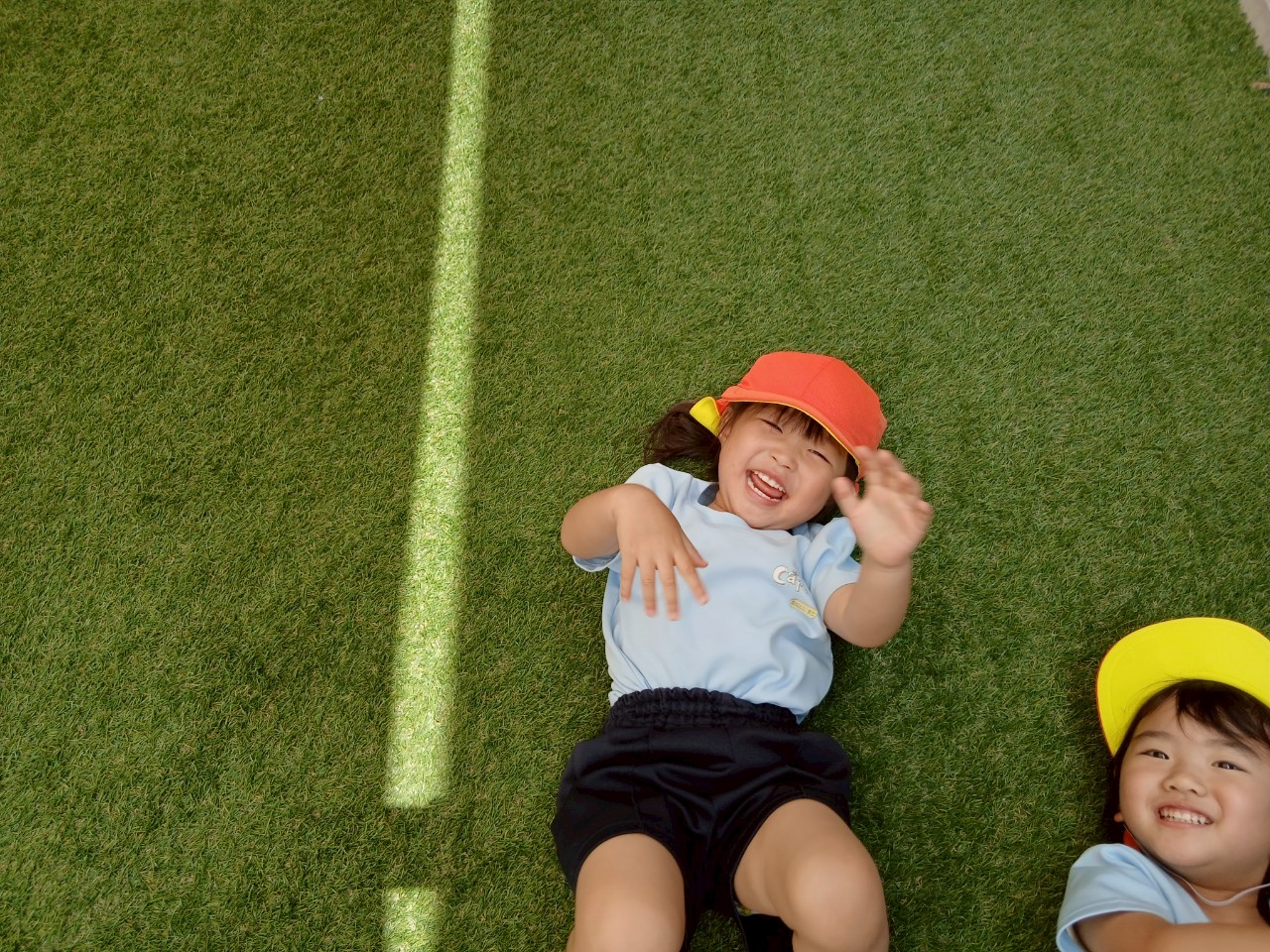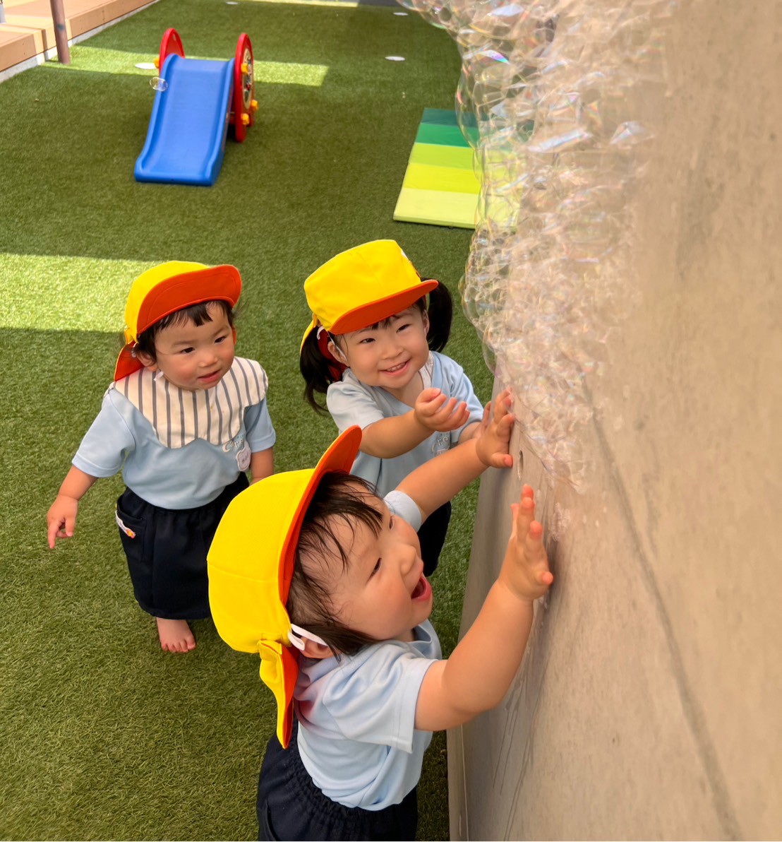 そのあとは園庭でシャボン玉を追いかけたり、トンボを見つけて観察したり、触れたり、滑り台でたっぷり体を動かしました✨