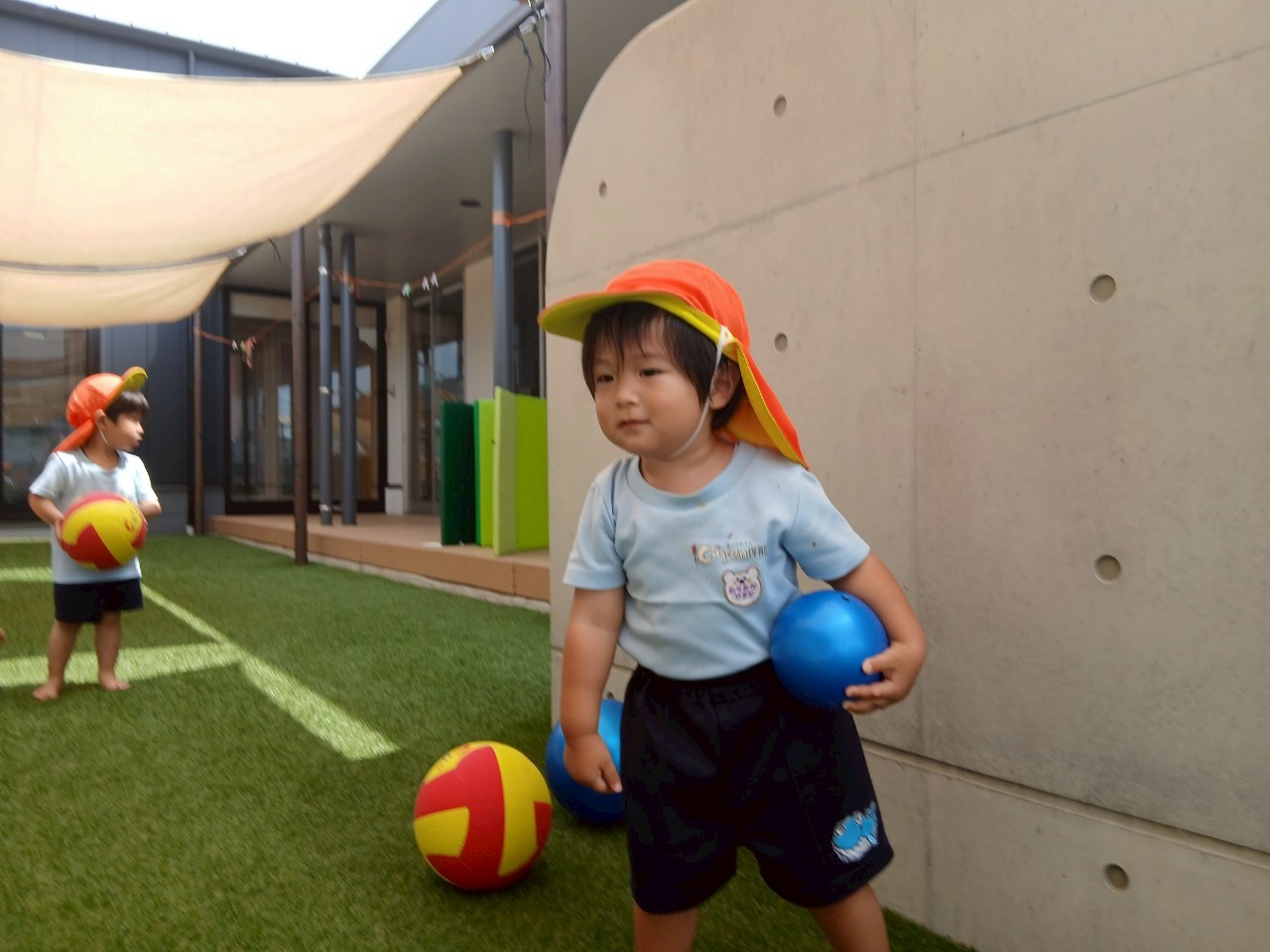 アイス製作の後は園庭に行って遊びました☺️ボール🏐で遊んだりや無限シャボン玉🫧をパチンと潰したり捕まえたり久しぶりの外遊びを楽しんでいたぱんだぐみ🐼さんでした。