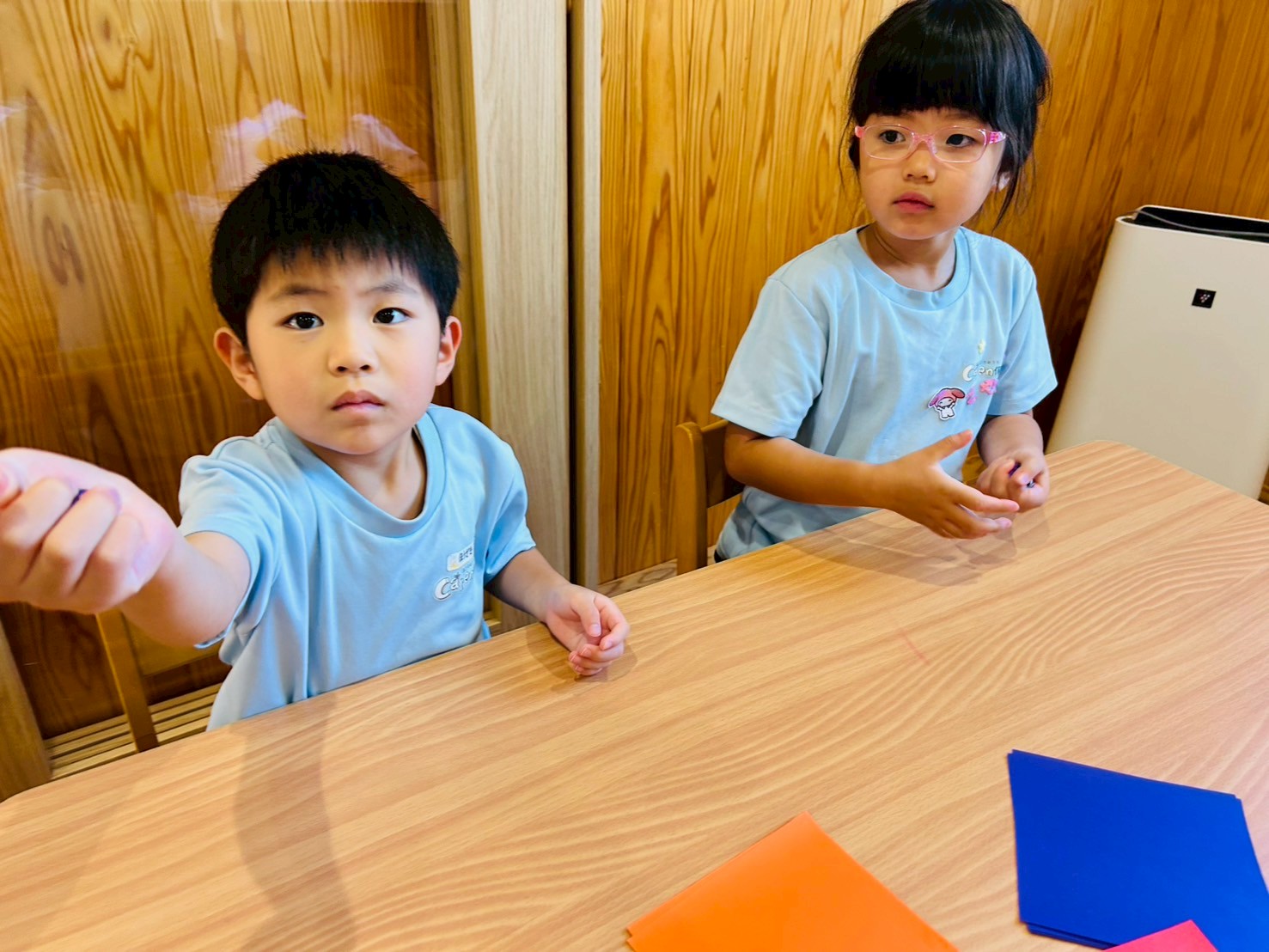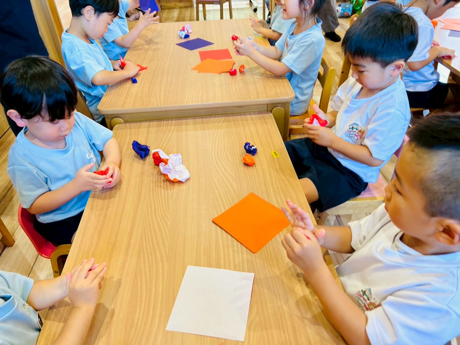 それぞれの折り紙を小さく丸めてもらい「せんせー小さくできたよ🎶」と見せてくれました☺️