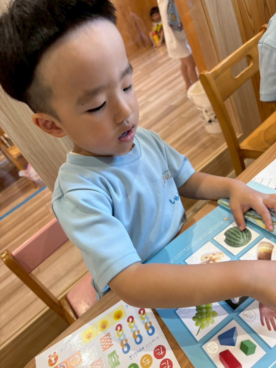 ひらがなシールを貼って大きな声で読んでみたり、左右の絵を見て数の違いに気づいたりとても積極的でした✨うさぎ🐰組は、待ちに待った水遊びの日🏖️✨