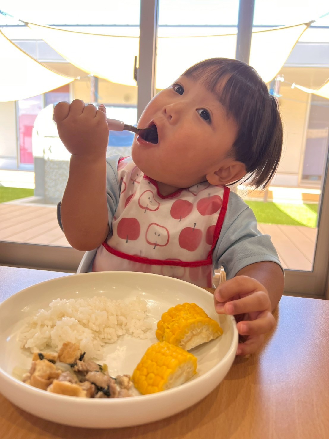 動物の名前を聞いて同じイラストカードを「これ!」と選んでいましたよ☺️英語の後はお部屋で椅子取りゲーム🪑や机上の移し替え遊びをしました。椅子取りゲームは以前したことを覚えて音楽に合わせて楽しんでいましたよ🎵移し替え遊びでは繰り返し遊んでましたよ🤗