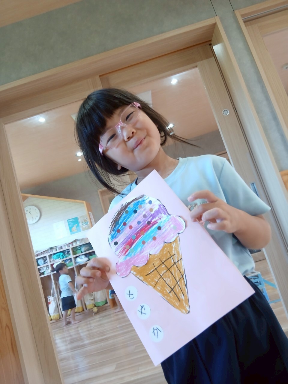 英語教室🔤の後は間違い探しのプリント、しりとり文字なぞりのプリントをしました✏️。間違い探しの数が増えるほど『えー😵あとどこが違うの❓』と無我夢中でさがしていたお友だち、最後は頑張って見つける事ができましたよ。 プリント学習の後はアイス🍦の製作をしクレヨン、はさみ、糊を使ってカラフルなアイス🍦を作る事できました💚【くりえいと園の今日の給食です】