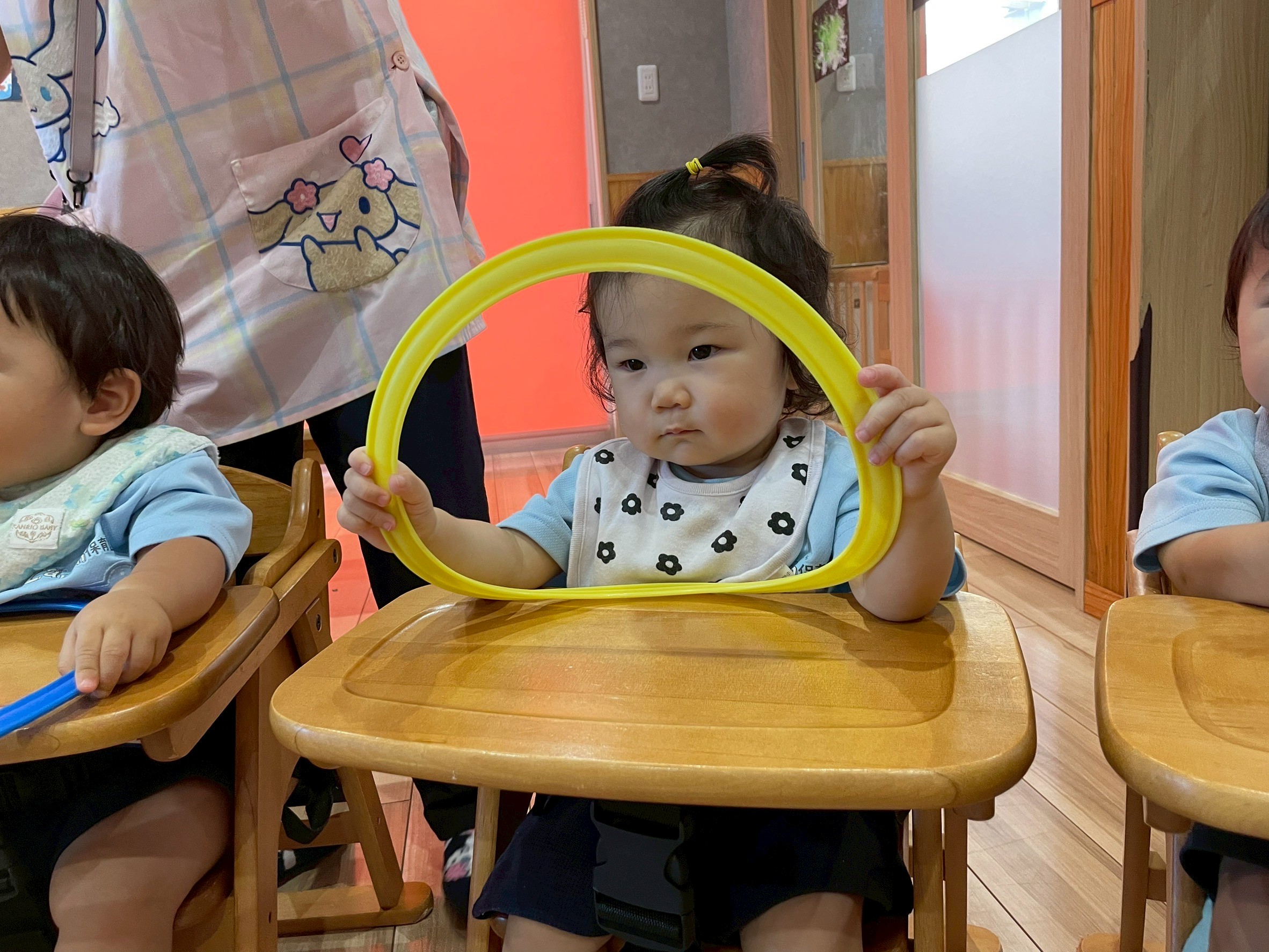 フープを使って「バスに乗って〜🚍」のリズム遊びも行い、最初はちょっぴり涙が出た子も、慣れてくるとニコニコで楽しんでいましたよ🩷ぱんだ組