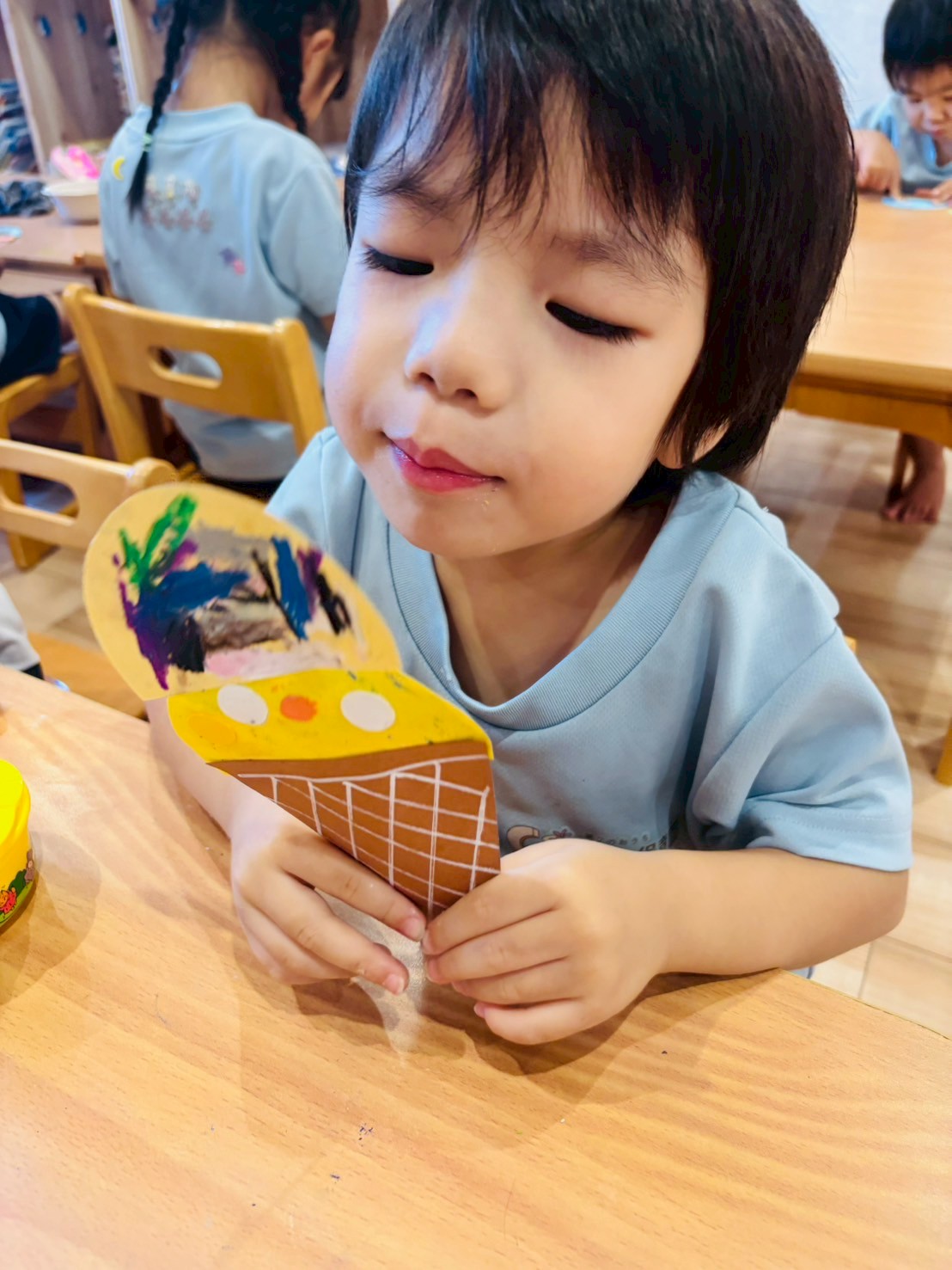 美味しそうなアイスクリームが完成し、ペロリと食べる真似をしていましたよ😋✨