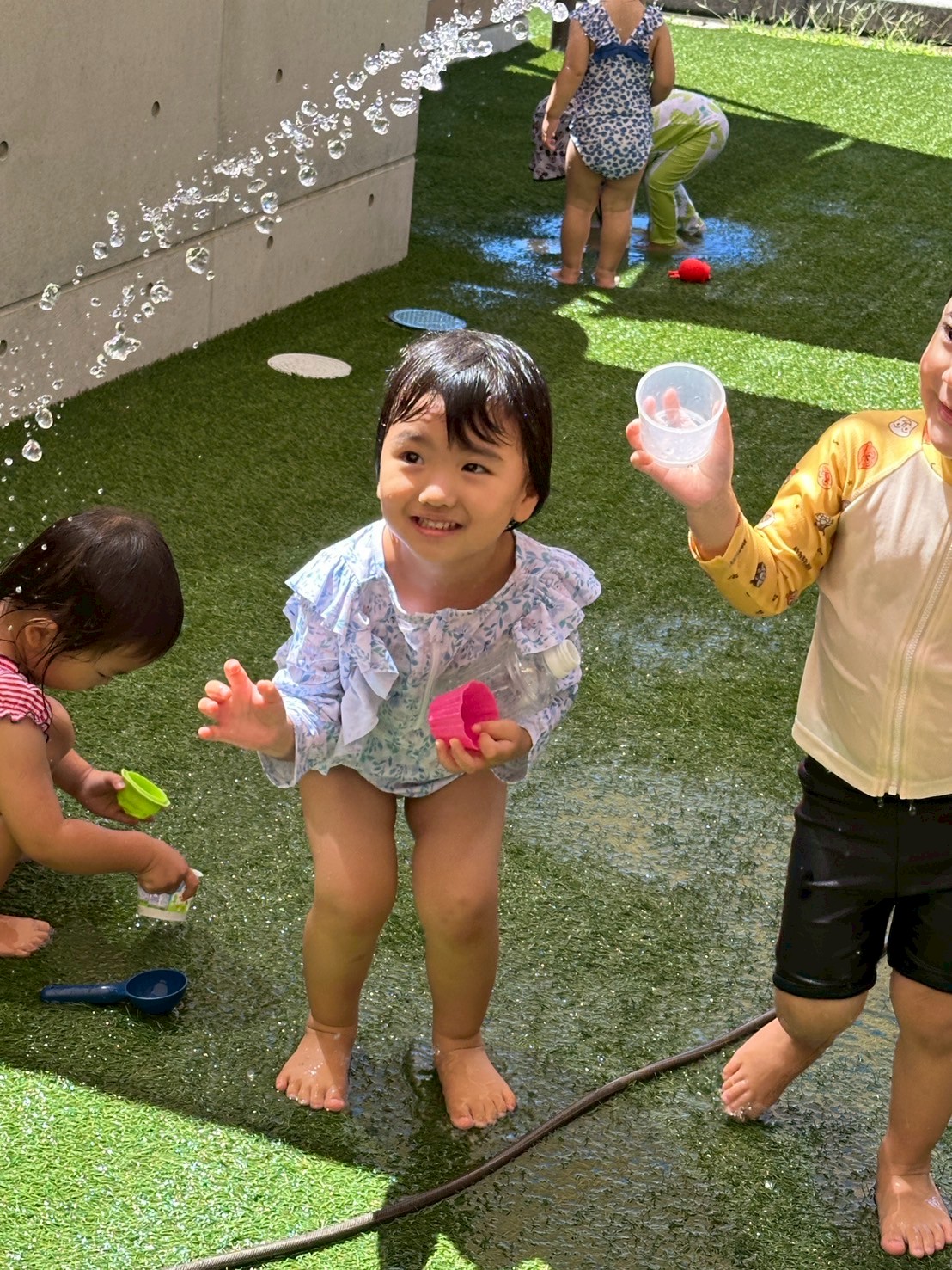 朝から楽しみにしていた子どもたち😊体操をしてからお約束を聞き、水遊びスタート!
