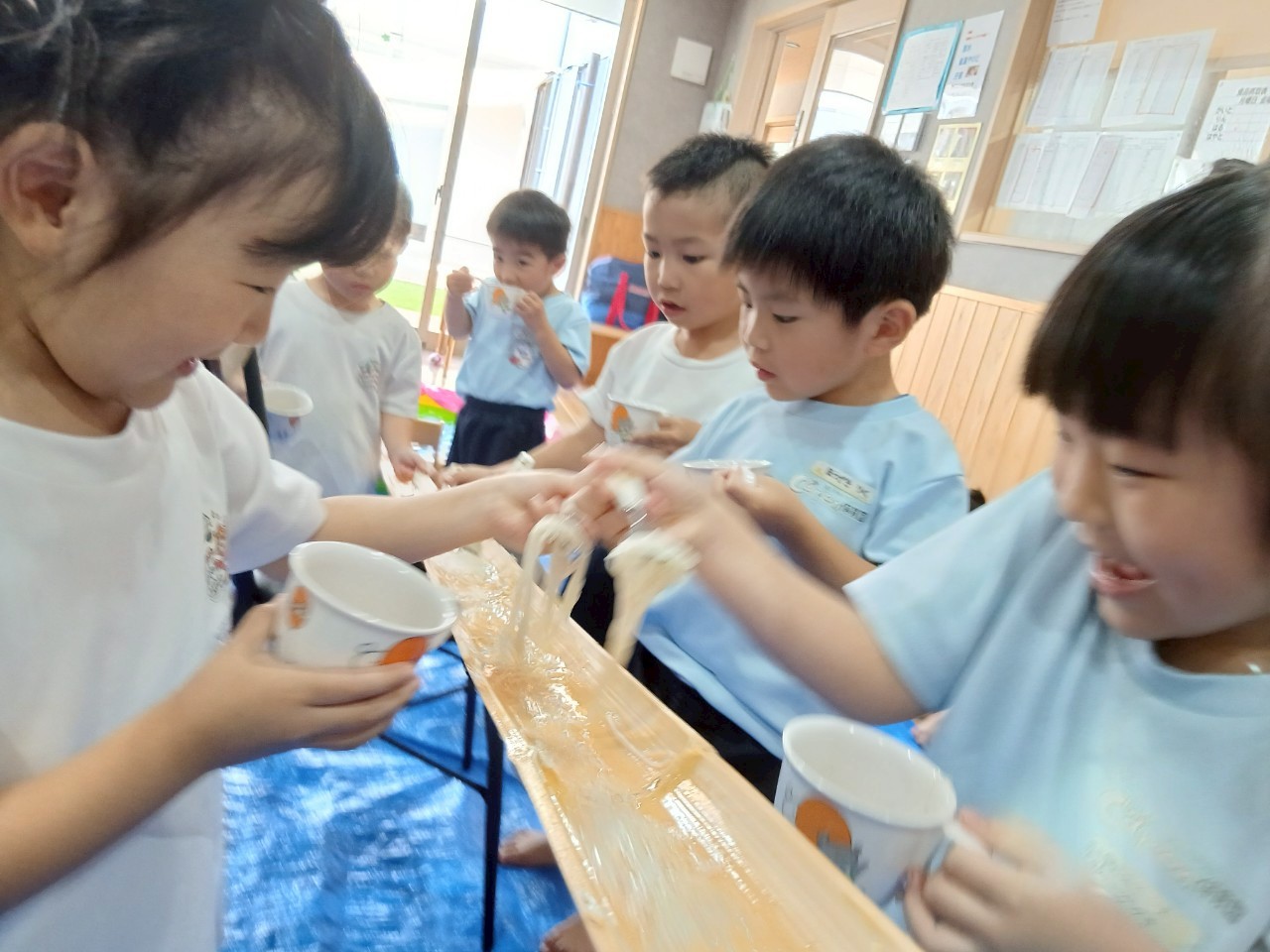 今日は“そうめん流し”がありましたよ🩵 他園のお友だちと一緒に楽しみました☺️