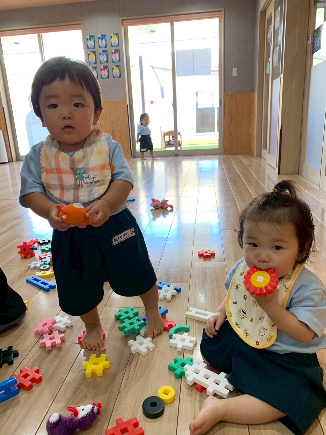 今日はりす組のお部屋で福津園のお友だちと一緒にブロックなどで遊びましたよ❣️