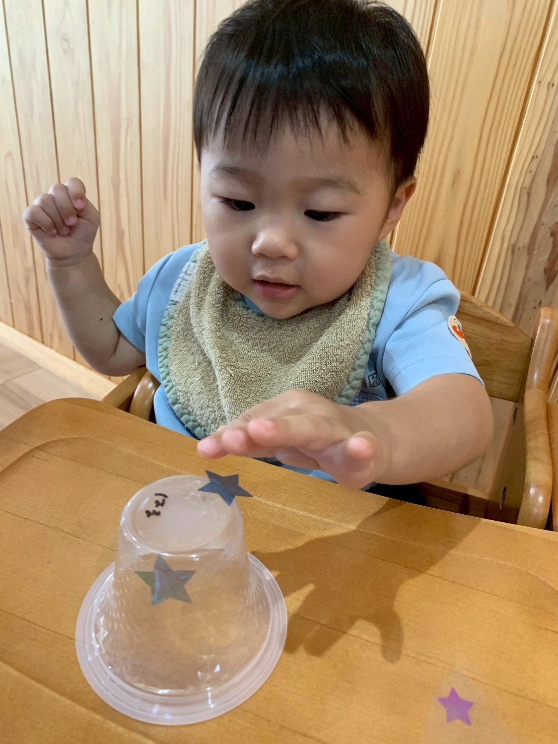 合間に室内飾りのシール貼りもしました⭐️ゼリーカップに星や花、魚のシールを思い思いに貼っていきました🐟かわいい飾りになりそうです💕