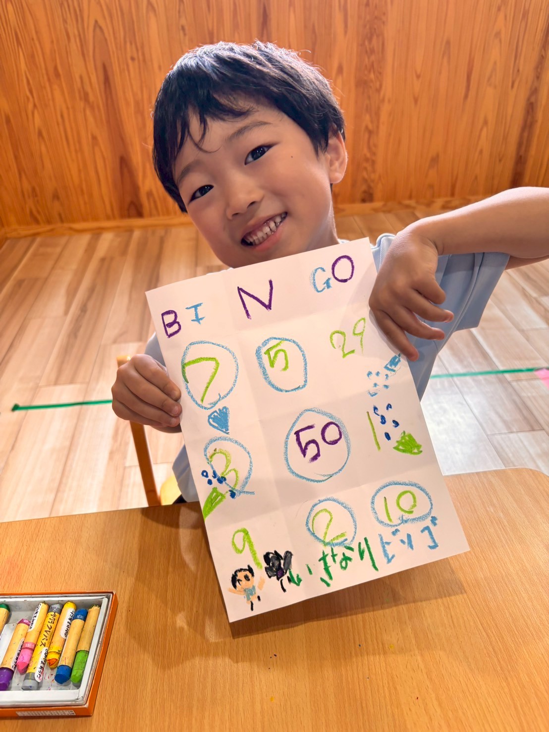 1〜50までの好きな数字を9個書いてオリジナルのビンゴを作りましたよ💕