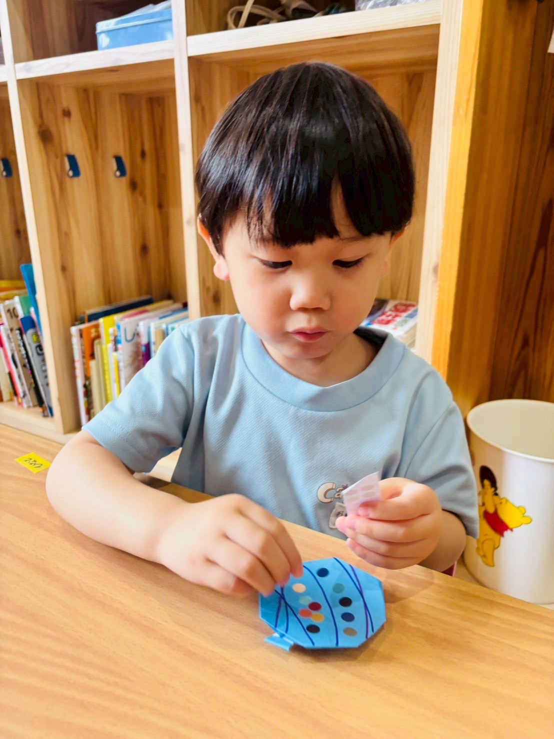 今日は折り紙で作ったヨーヨーに丸シールを貼りましたよ💕可愛いヨーヨーが完成しました🤭