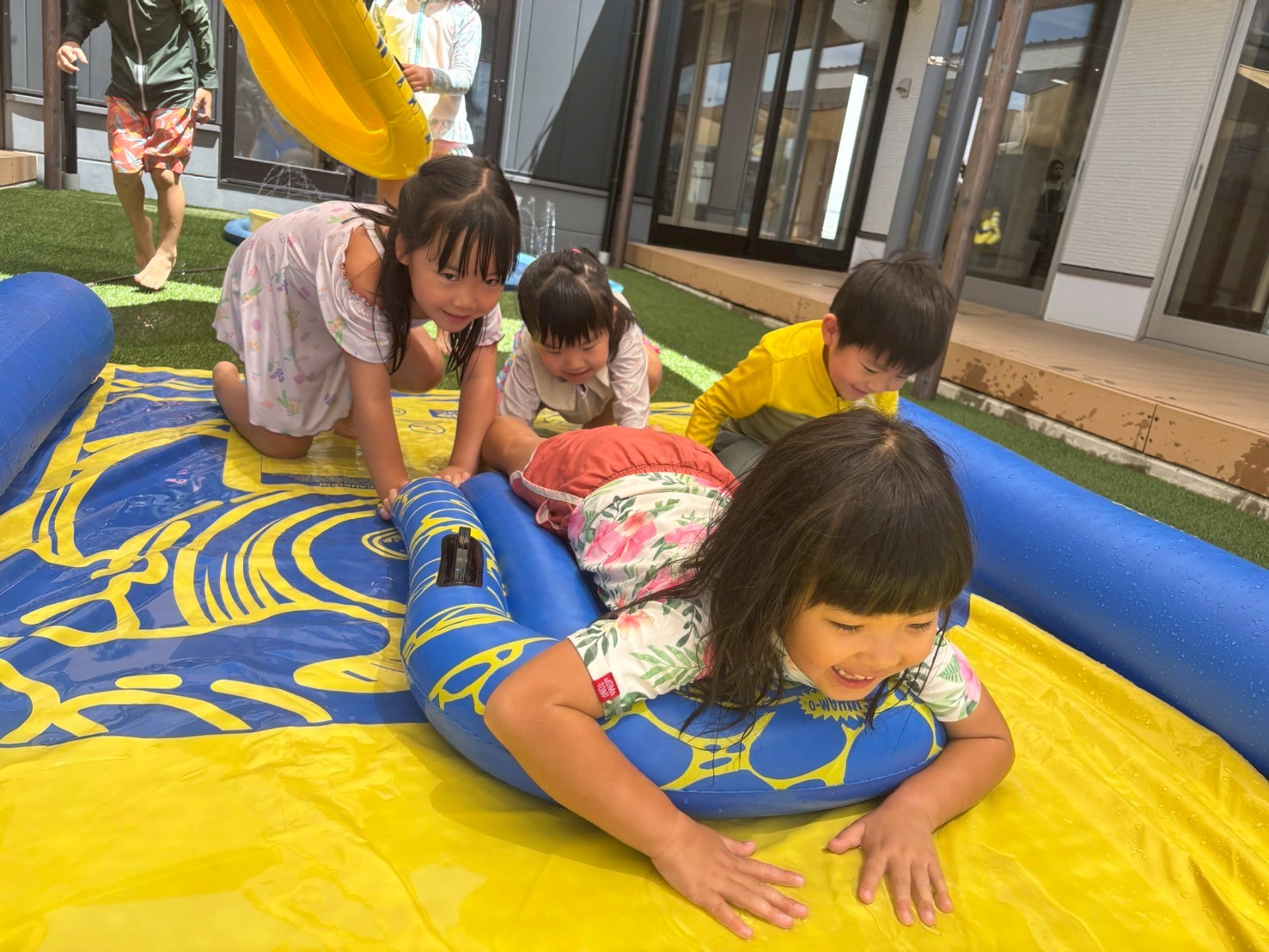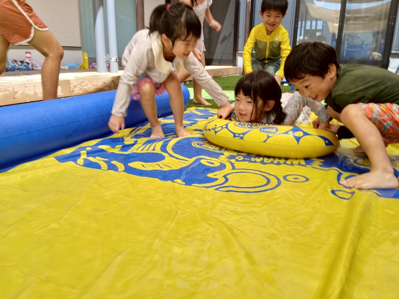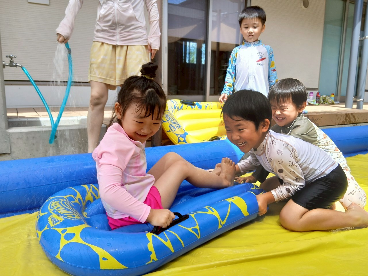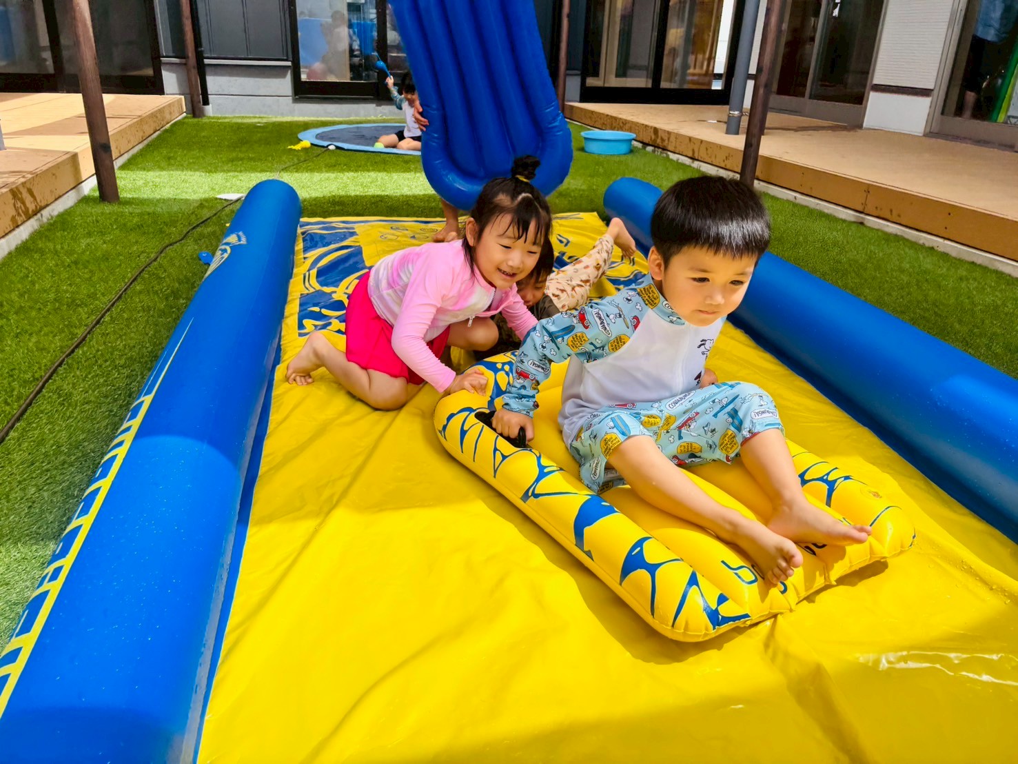 ビュンビュン滑って〜お友だちの浮き輪を後ろから押してあげ自分でもすべっちゃったりと楽しんでいました😘