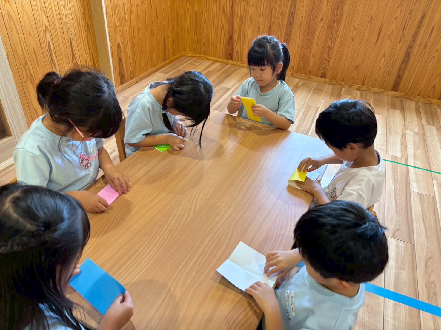 一斉に折り始めると、苦戦しながらも説明を思い出しながらお友達と一緒に試行錯誤して頑張っていましたよ♡