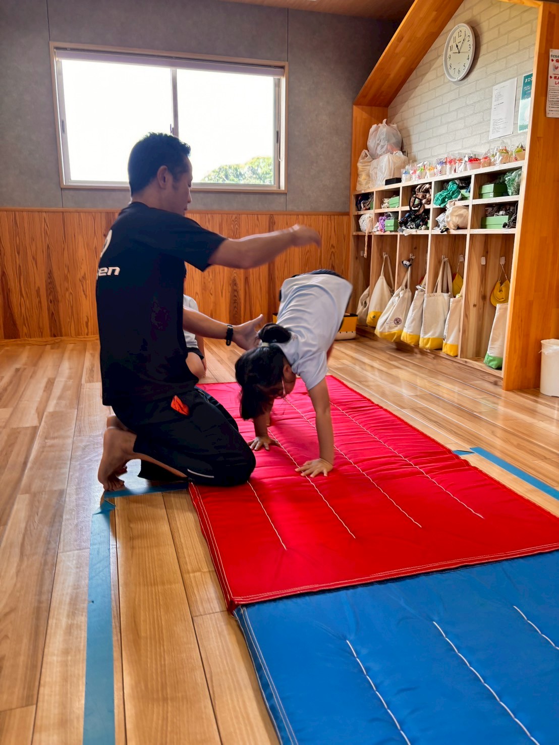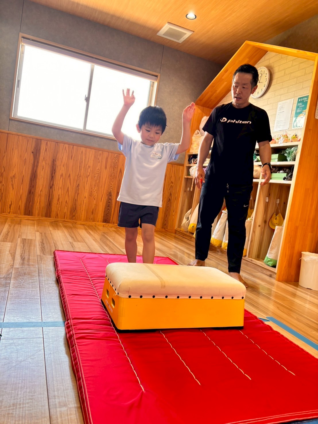 最初は跳び箱を使って飛び越える練習をしてその後は、跳び箱なしでもチャレンジしました🩷