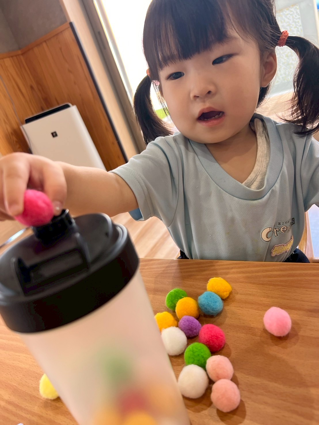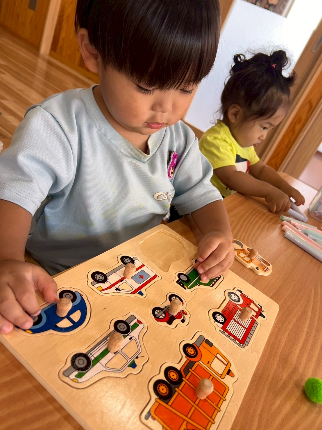 今日は子どもたちのリクエストで、机上遊びの パズルと ポットン落としをしました🧩