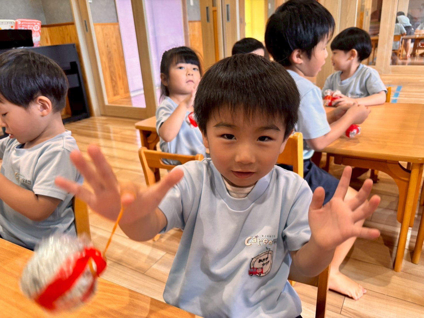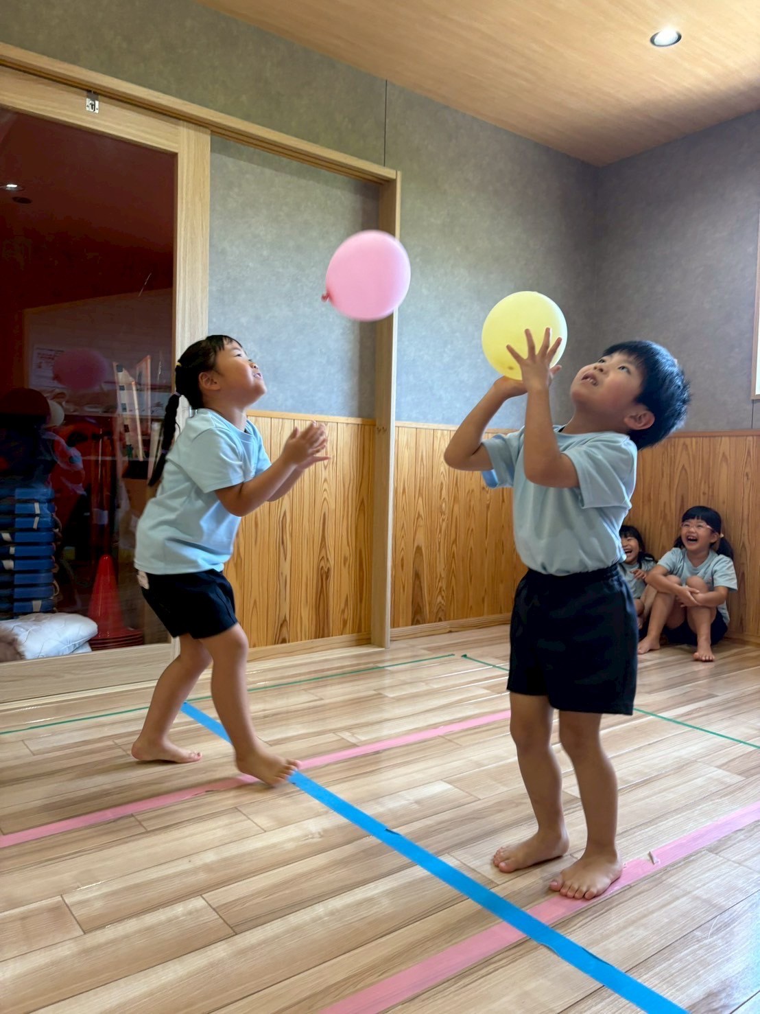 跳ね返りのタイミングがわからない子が多くいましたがだんだんコツをつかむとパー✋で叩くことが出来ていましたよ⭐️