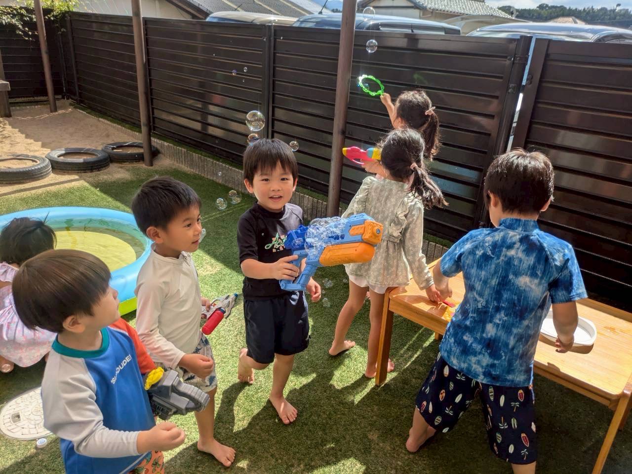 今日は水遊びの日🌊 久しぶりに9人全員が揃い、とてもにぎやかなりす組さんでした😊