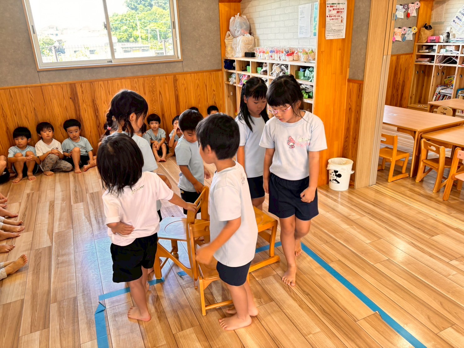 その後ジャンケンゲームもして盛り上がりました🩷最後にうさぎ、こあら、きりん組みんなで椅子取りゲーム🪑をして遊びました🧡