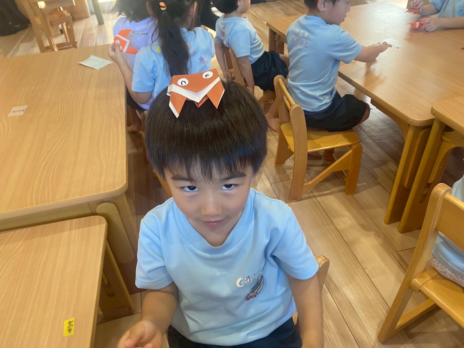 みんな上手に折ることが出来、最後に目もつけて可愛いセミが完成しましたよ✌️