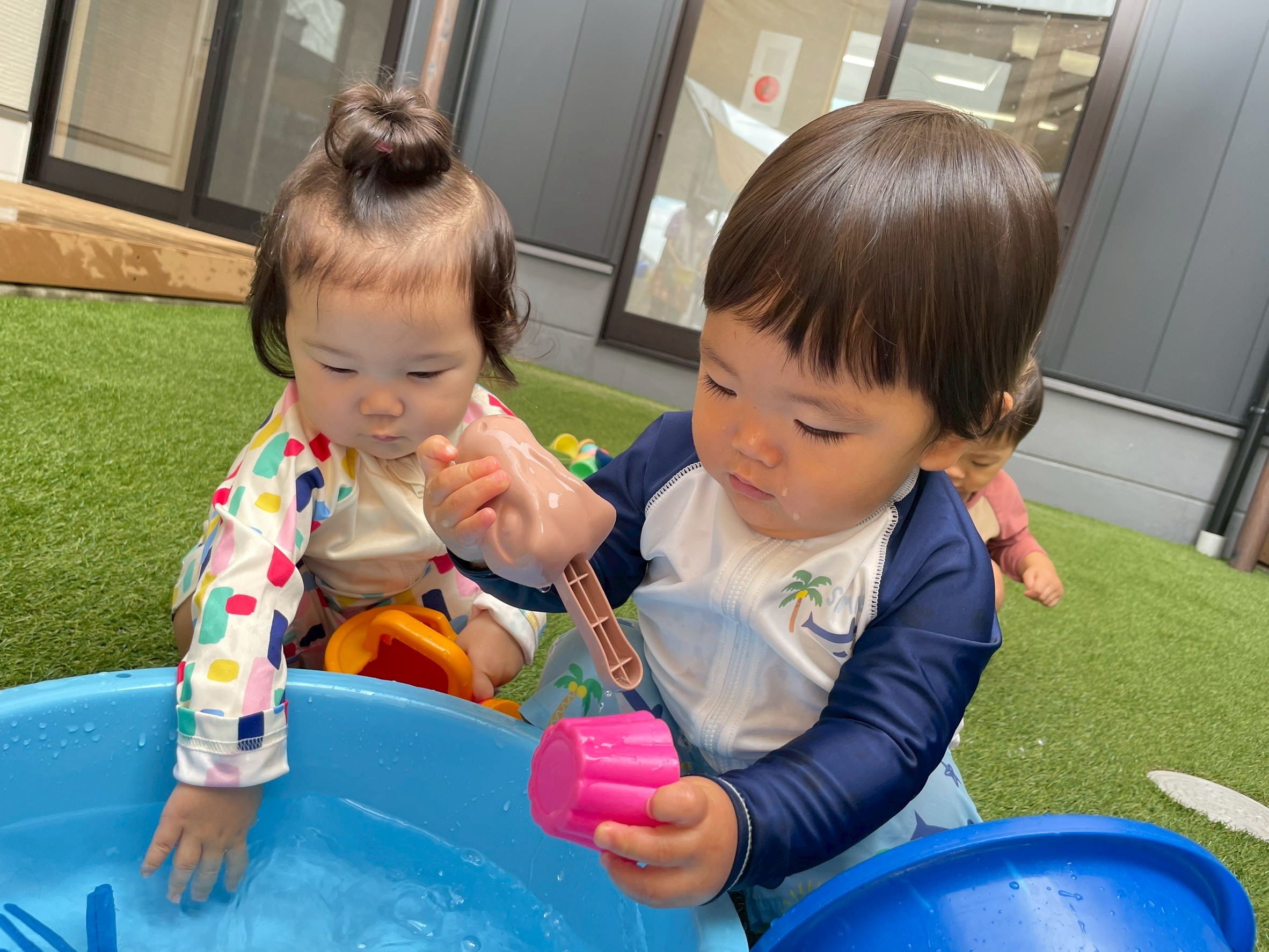 バケツの水をバシャバシャしたり、スコップですくって笑顔いっぱいに楽しみました⭐️