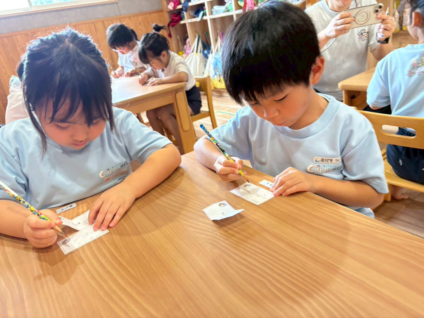給食を一緒に食べたあとは、バスハイクの夜ご飯で作るカレーライスやフルーツヨーグルトに入れる材料をくじ引きをして決めました😋自分たちで紙に書き写して「楽しみだな〜🎶」とワクワクな子どもたち🤩最後にしりとりもできて「帰りたくなーい」と言ってもらえるほど楽しい時間だったようです🩵